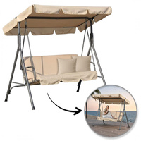 Huśtawka ogrodowa 3-osobowa z baldachimem i 2 poduszkami, beżowa HO01K