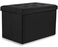 Pufa składana XL z guzikami - 60x38x38cm aksamit czarna