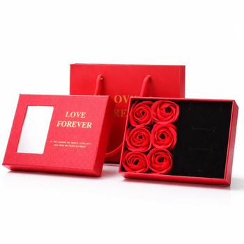 Pudełeczko na biżuterie z 6 szt. zapachowych róż mydlanych, czerwone na prezent BUK28CZE