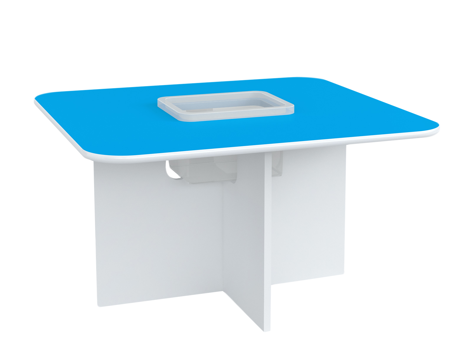 - Stolik w kolorze biało-niebieskim,
