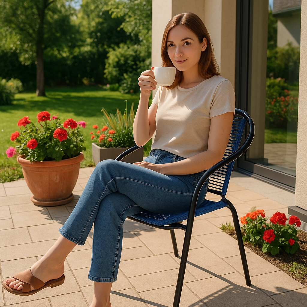 ➡️ Fotel BISTRO sznurkowy to doskonały wybór dla osób, które pragną stworzyć wygodne i stylowe miejsce do relaksu na balkonie, tarasie lub w ogrodzie.