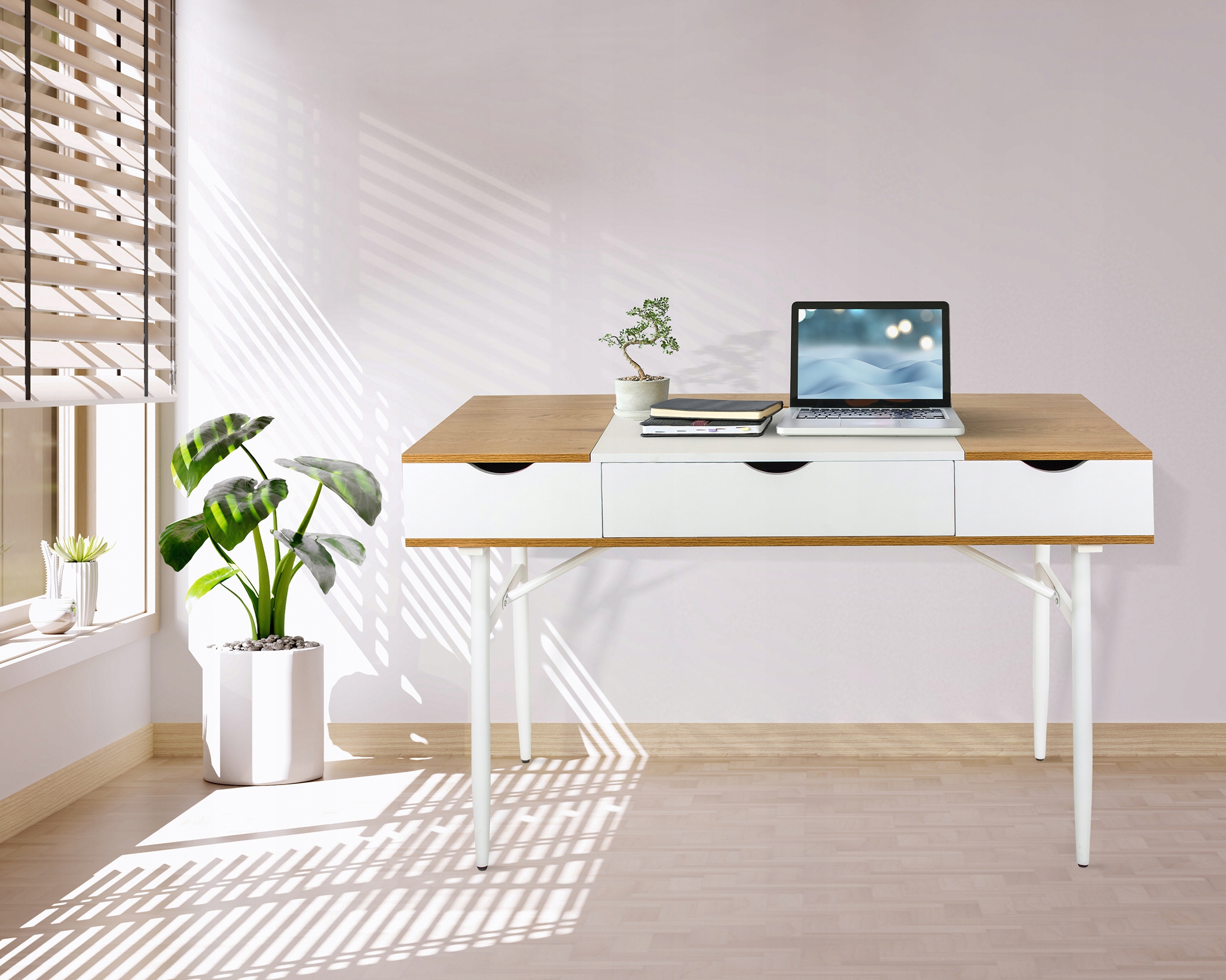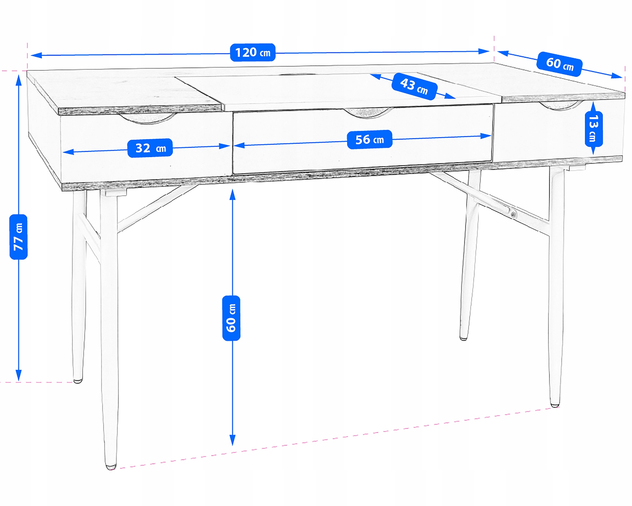 Biurko oferuje przestronną powierzchnię roboczą, idealną do pracy, nauki czy tworzenia.