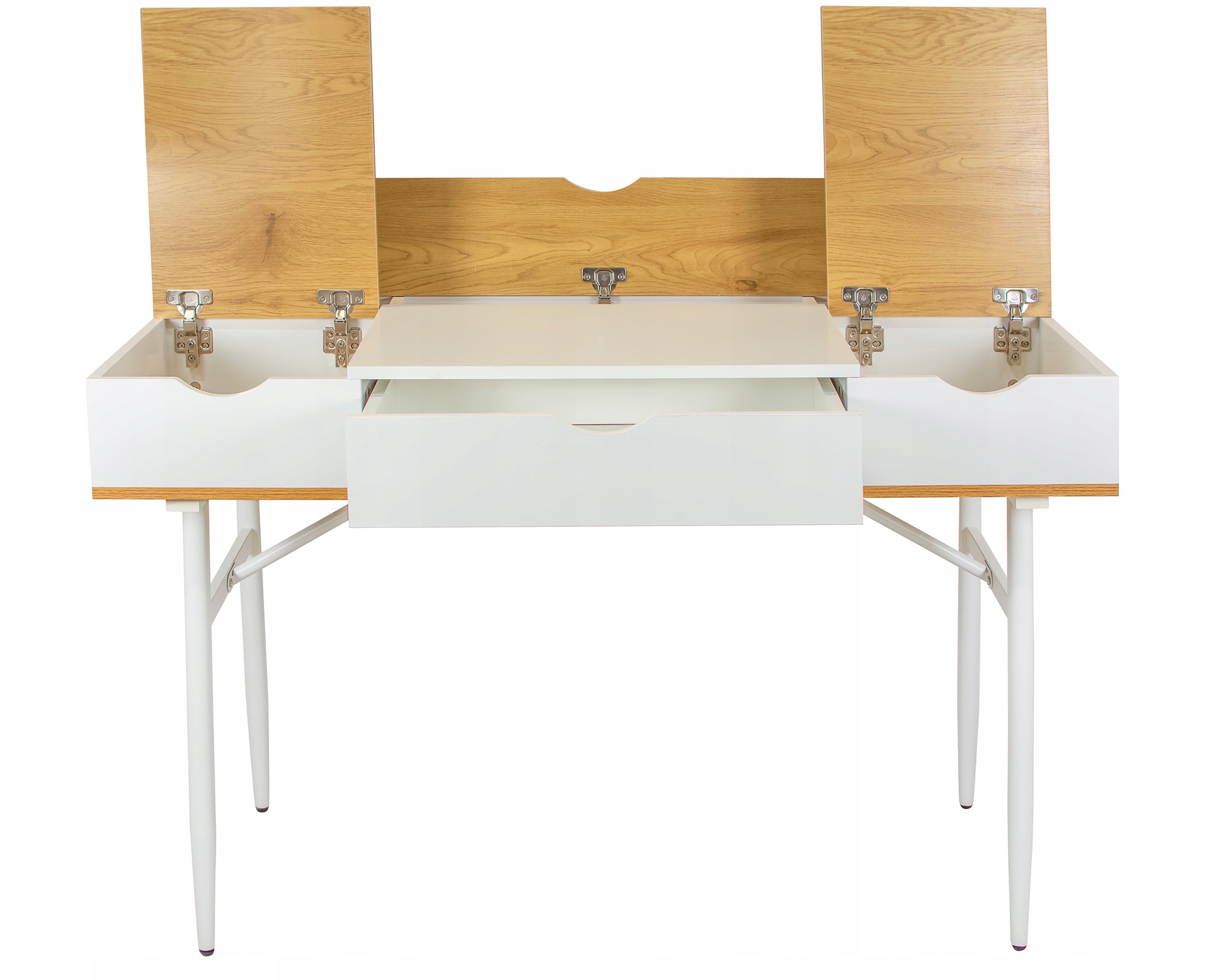 W szufladzie oraz pojemnych szafkach otwieranych do góry z łatwością przechowasz niezbędne przedmioty, dokumenty czy akcesoria biurowe.