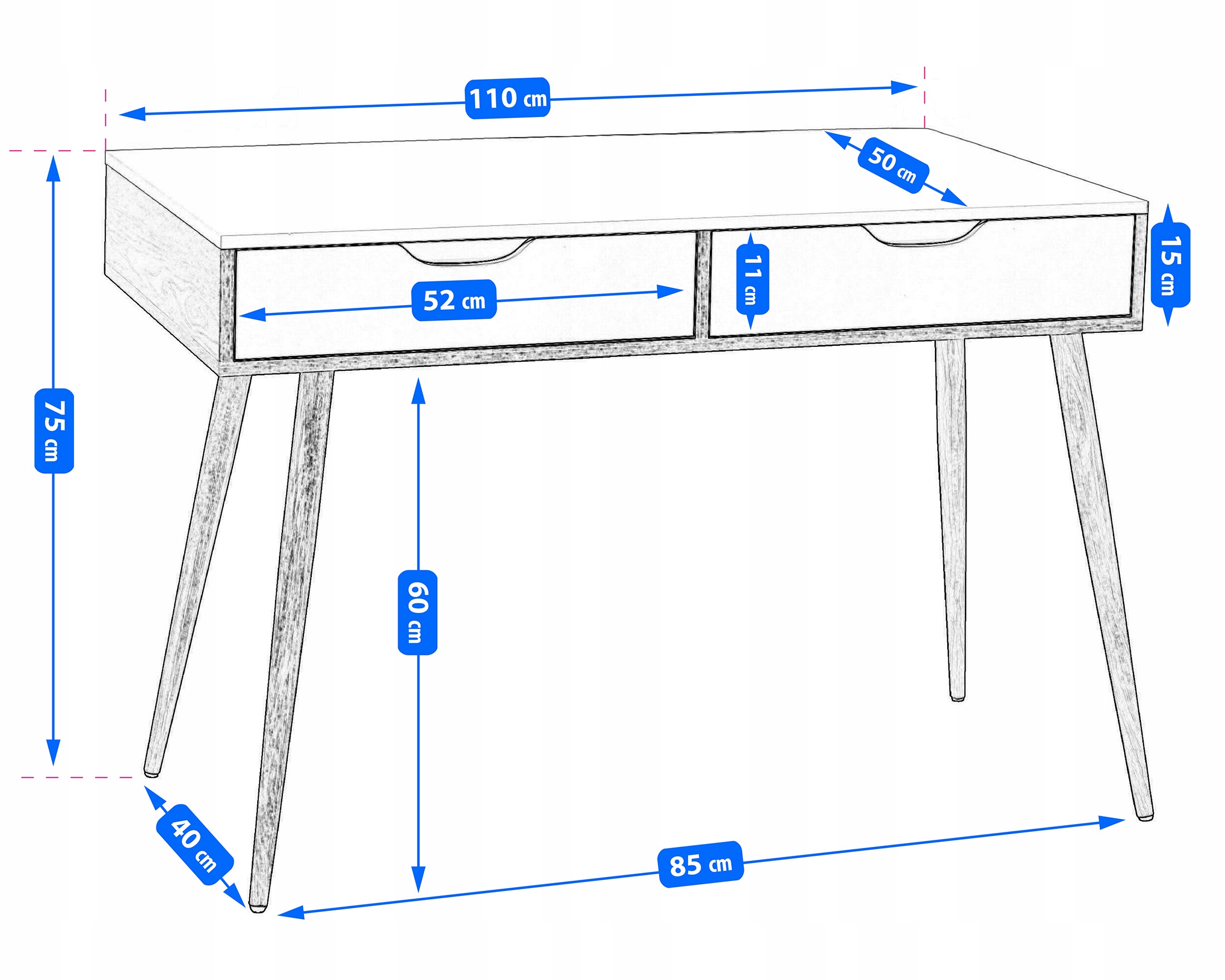 - Biurko posiada prostą konstrukcję, co nadaje lekkości i elegancji. To nie tylko miejsce do pracy, ale również stylowy element aranżacji każdego wnętrza.