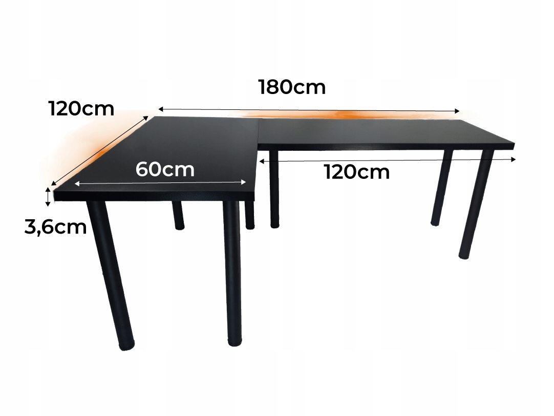 Oferta dotyczy czarnego biurka narożnego: 180x75x60 cm, seria TOP, MODEL 1