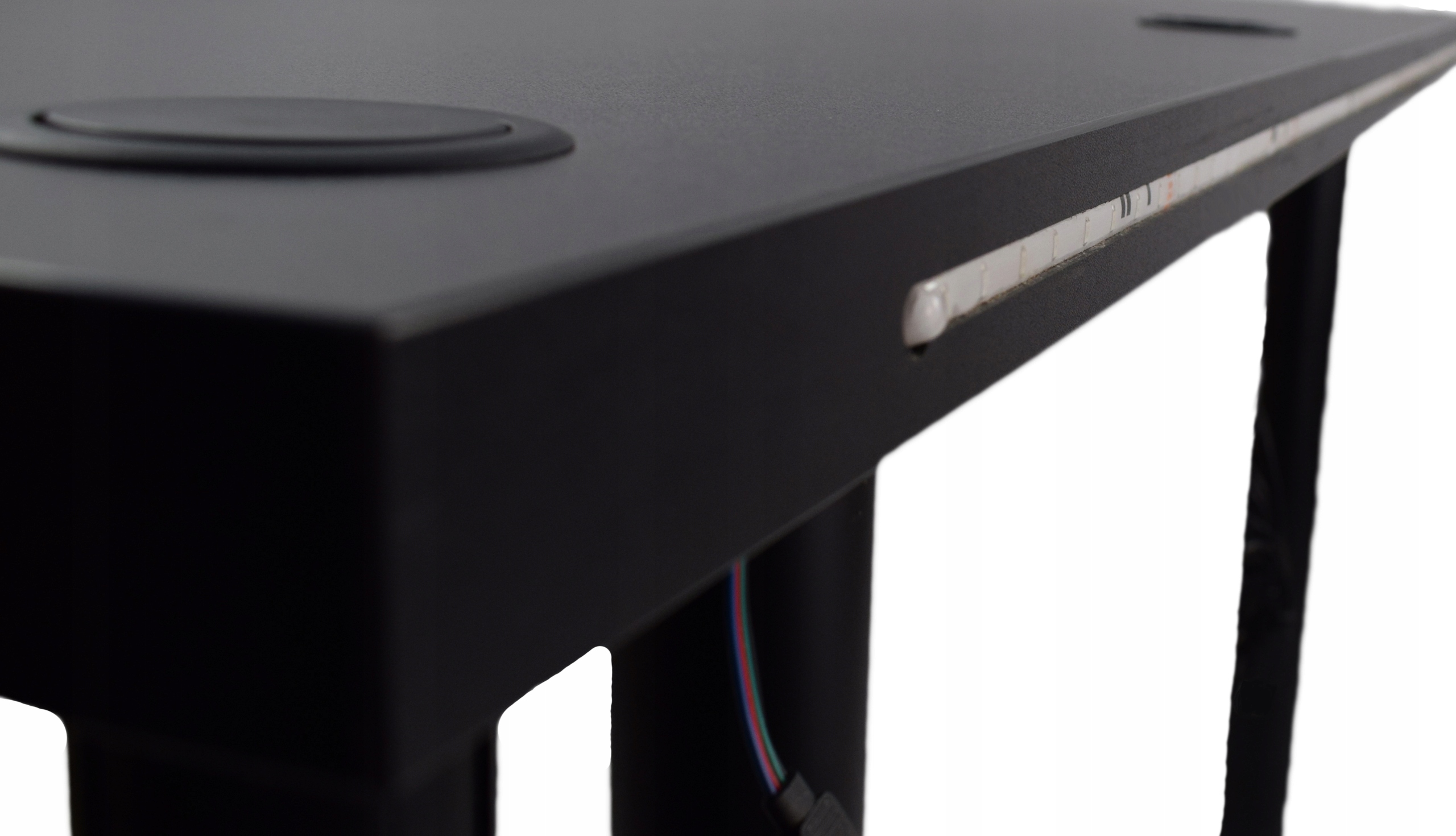 Biurko zostało wyposażone w designerską taśmę LED, która prezentuje się niezwykle estetycznie dzięki wpuszczeniu bezpośrednio w blat. LEDY posiadają aż 16 kolorów i 4 efekty świetlne do wyboru! W zestawie otrzymasz pilot do zdalnego sterowania kolorami. Dodatkowo taśma jest wodoodporna - o nic nie musisz się martwić!