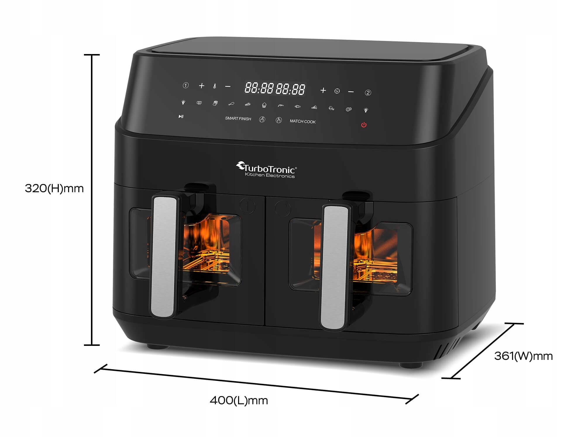 - Oba kosze są niezależne więc możemy w każdym ustawić inny program i czas smażenia lub jeżeli smażymy w obu koszach tą samą potrawę wybieramy takie same preferencje. To takie wygodne !!!