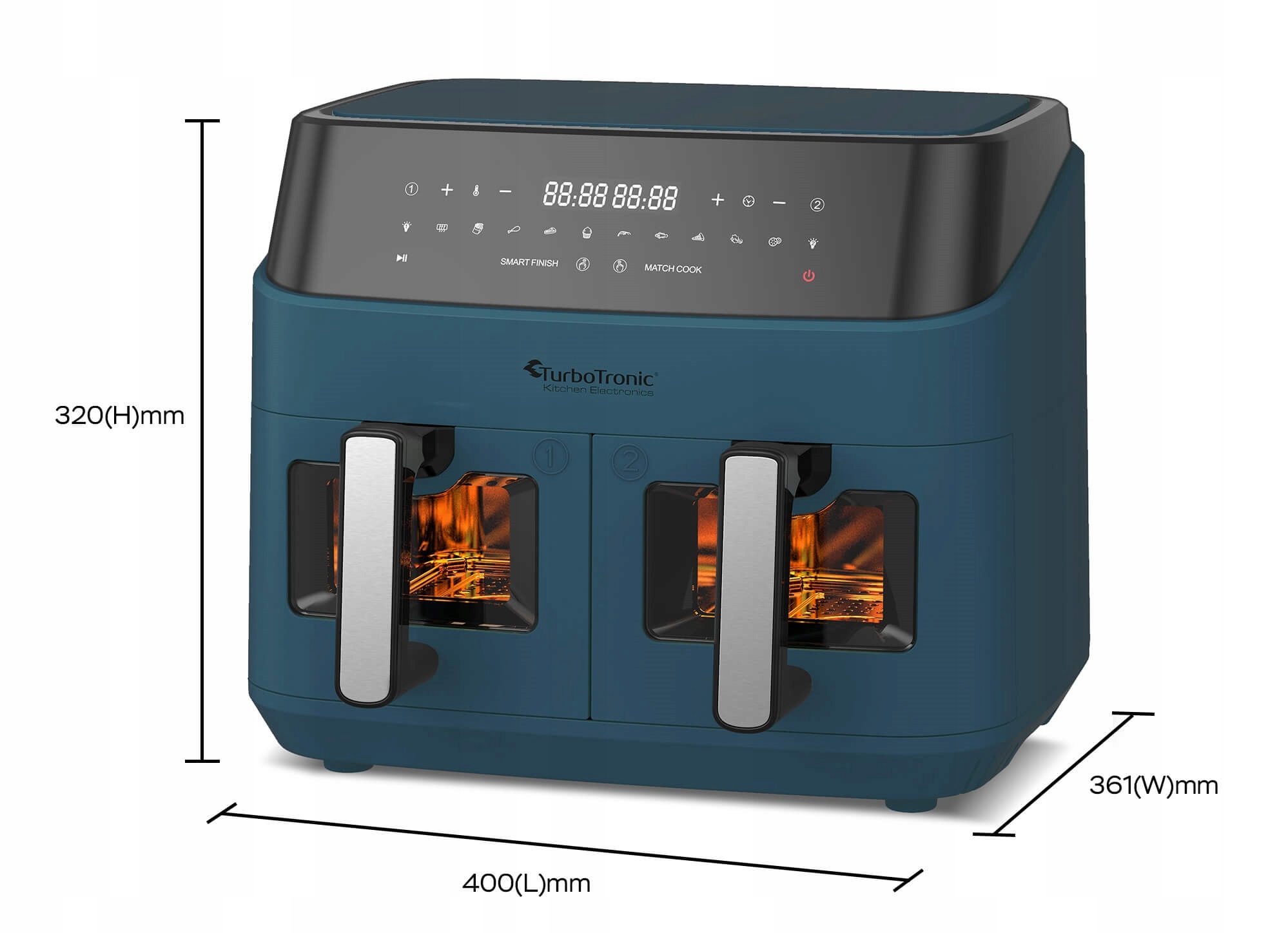 Frytownica beztłuszczowa z dwoma niezależnymi koszami do smażenia to urządzenie kuchenne, które pozwala na smażenie różnych potraw bez potrzeby użycia tłuszczu. Posiada ona dwa oddzielne kosze, dzięki czemu można jednocześnie smażyć różne potrawy bez mieszania zapachów i smaków.