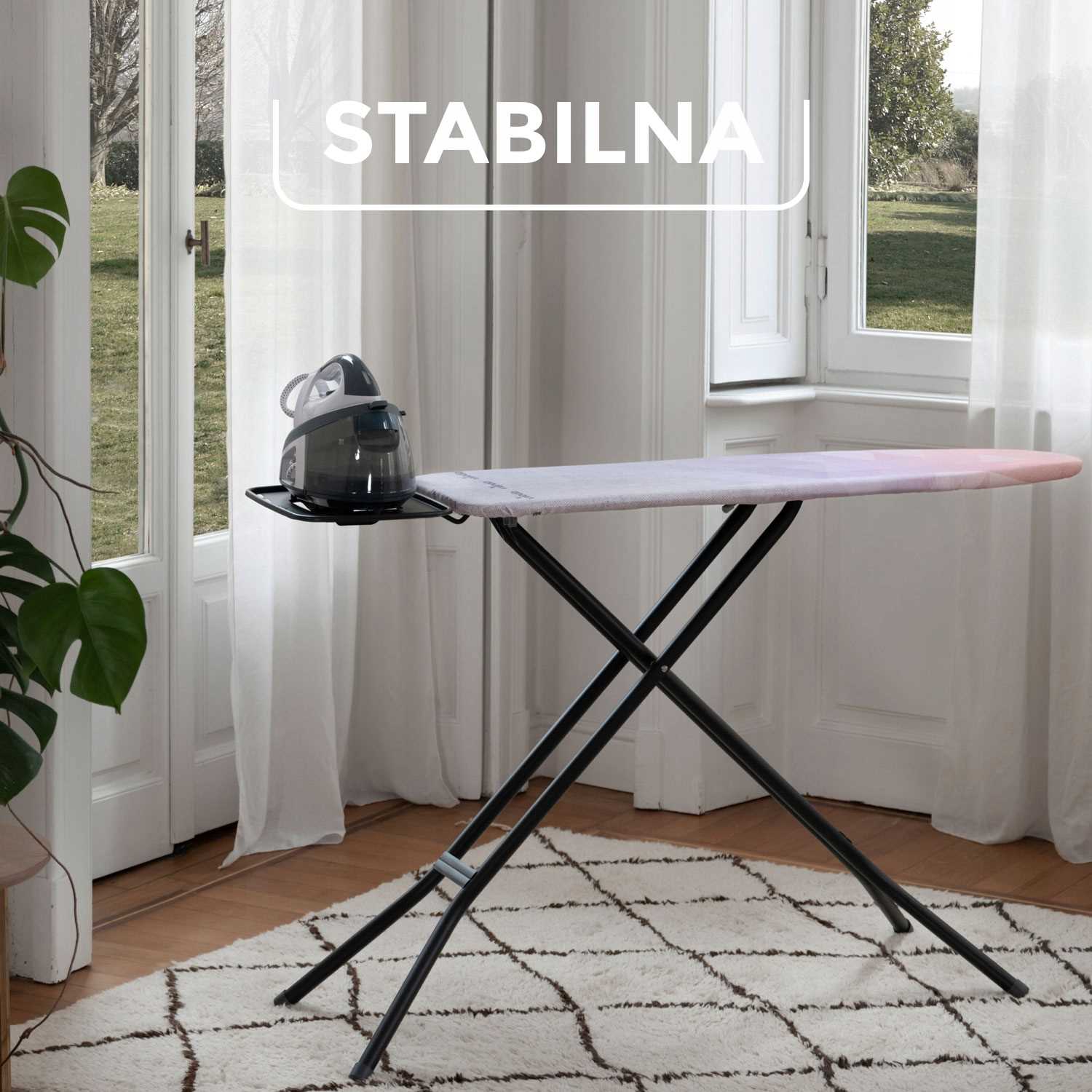 - Dzięki tytanowej powłoce, przyjaznej dla pleców konstrukcji z regulacją wysokości oraz systemowi zabezpieczającemu przed przypadkowym złożeniem, prasowanie ubrań jest łatwiejsze niż kiedykolwiek, a pokrowiec wytrzyma dłużej niż jego bawełniane odpowiednik