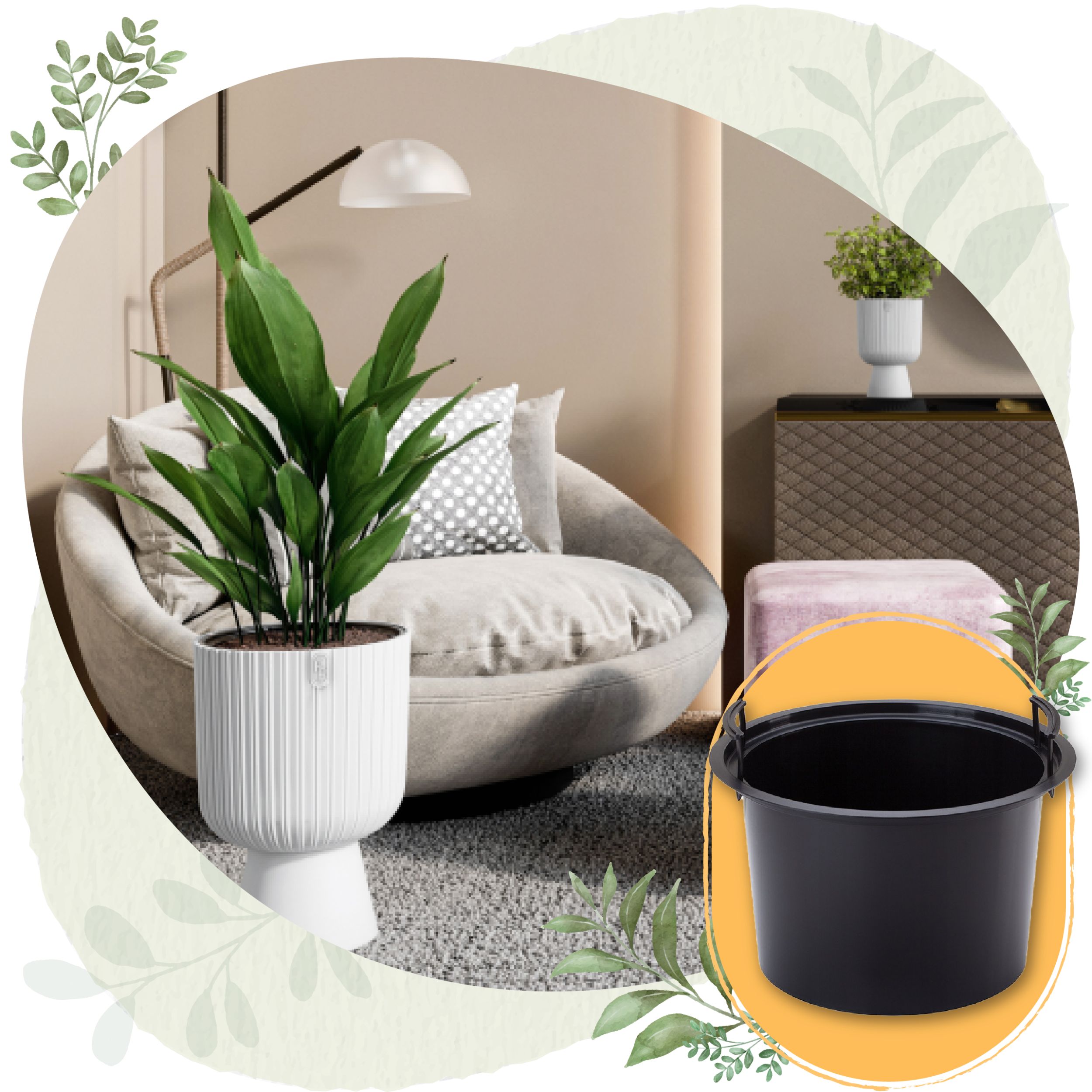 Wkład wyposażony w uchwyty, dzięki którym łatwo wyciągniesz go z doniczki.