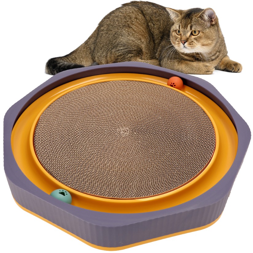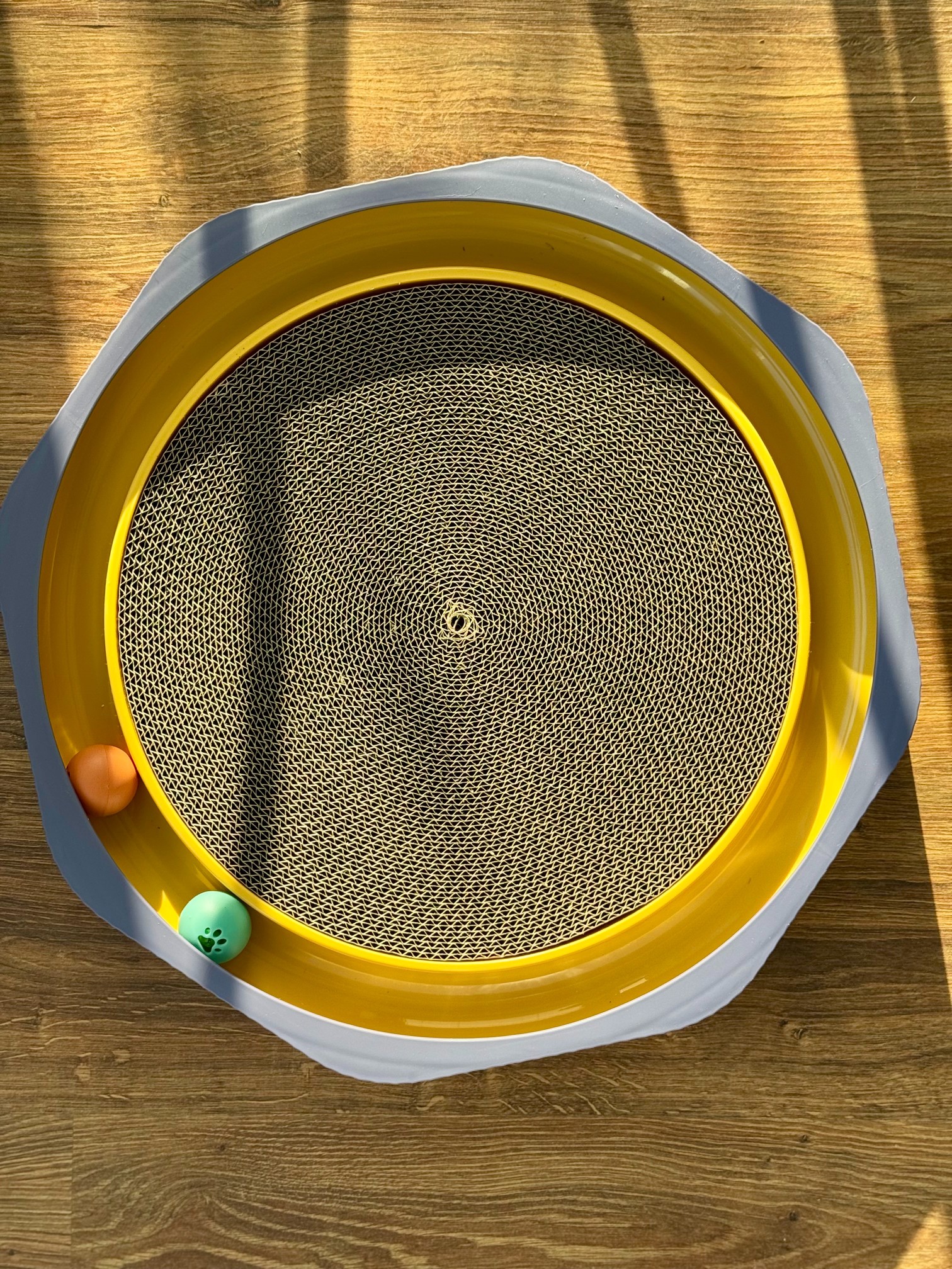 ➡️ W boki podstawy wmontowane są dwie kuleczki, które są dodatkową atrakcją do całej zabawki. Jej wielkość pozwala zwierzakowi na położenie się na niej i odpoczywanie.