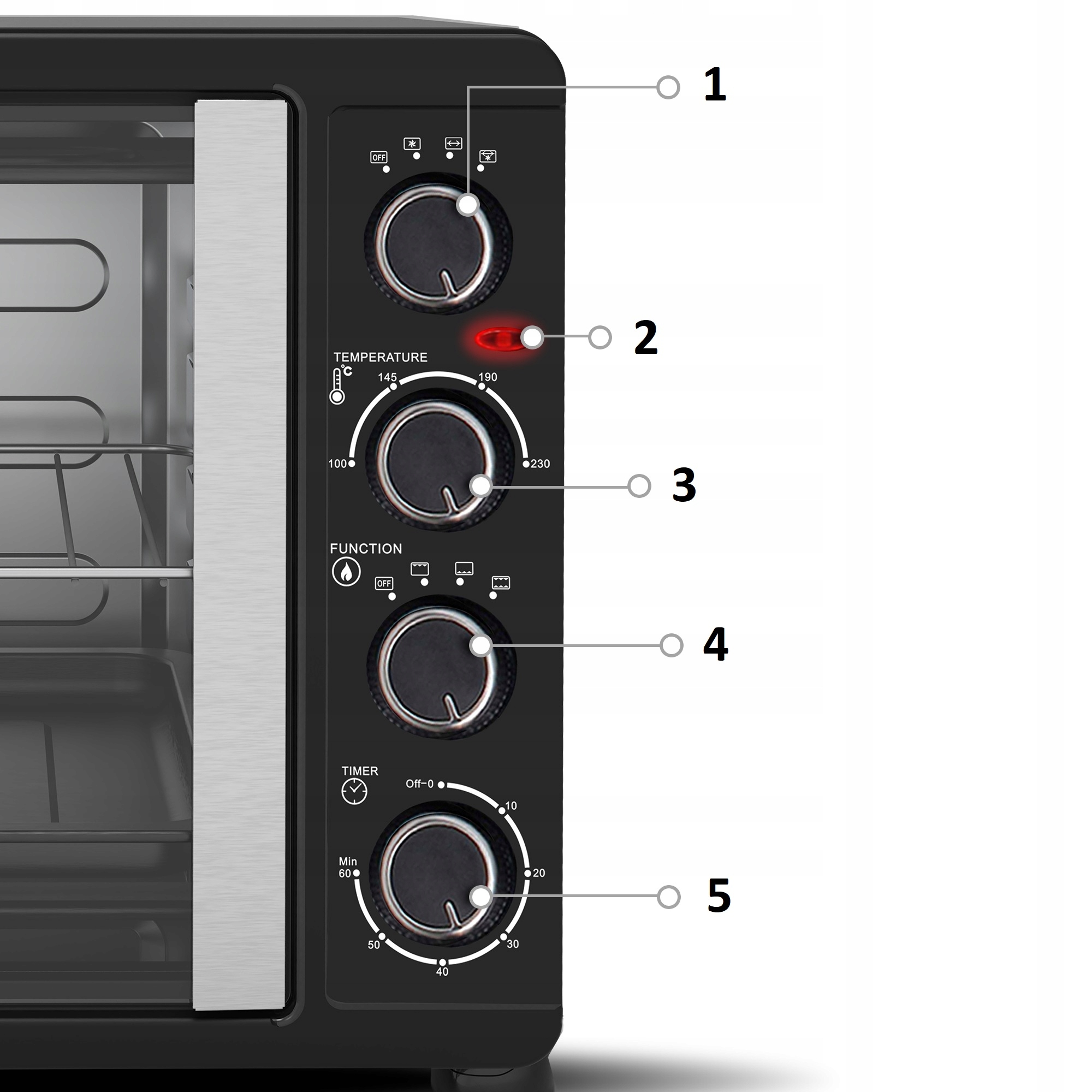 Regulacja temperatury w zakresie 100-230°C pozwala na dostosowanie do własnych potrzeb, a timer do 60 min umożliwia kontrolowanie procesu pieczenia.