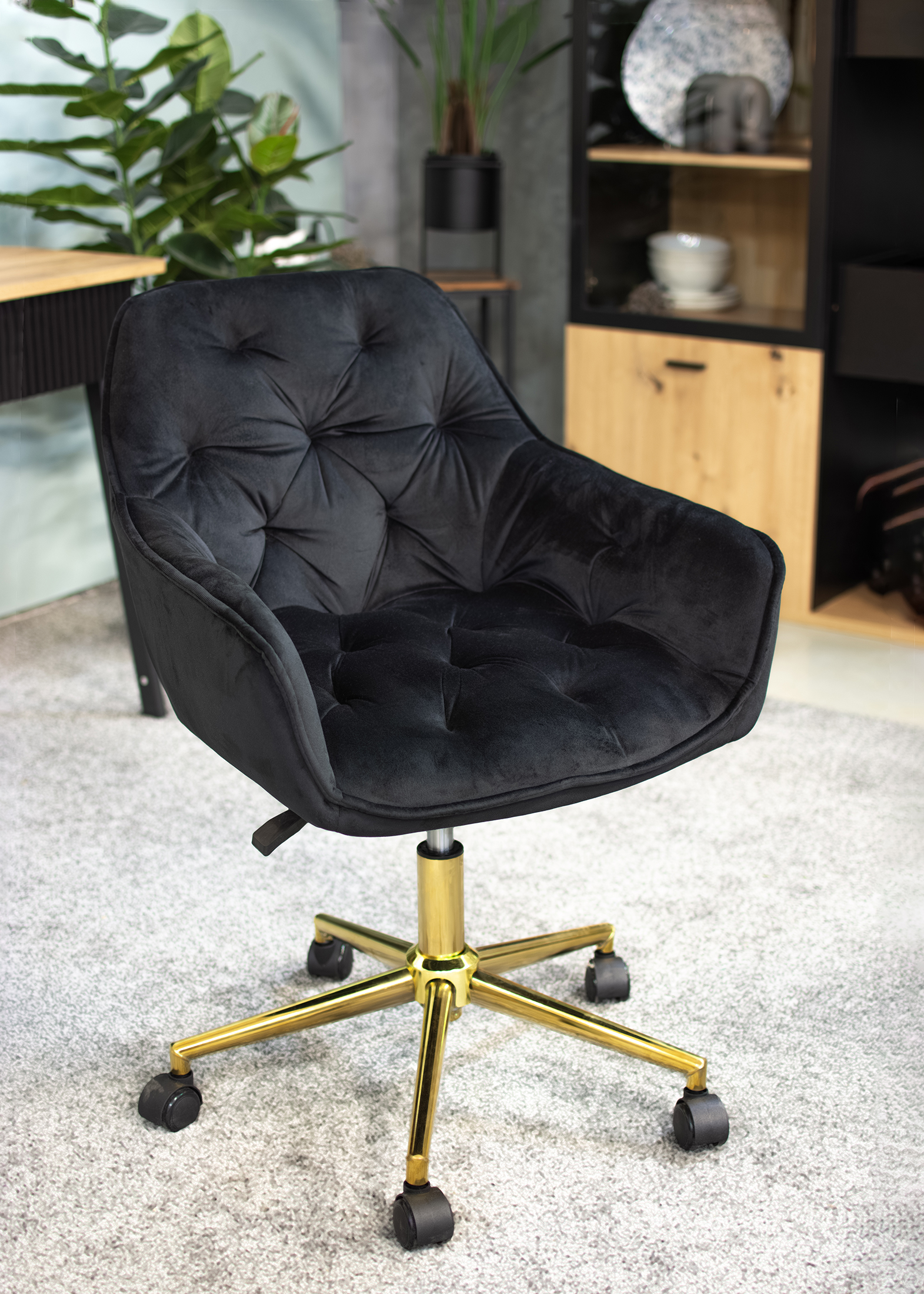 - Elegancki fotel biurowy obity miękkim welurem, łączący nowoczesny design z wyjątkowym komfortem. Regulacja wysokości i 360-stopniowy obrót zapewniają wygodę podczas pracy. Solidna podstawa na pięciu kółkach gwarantuj
