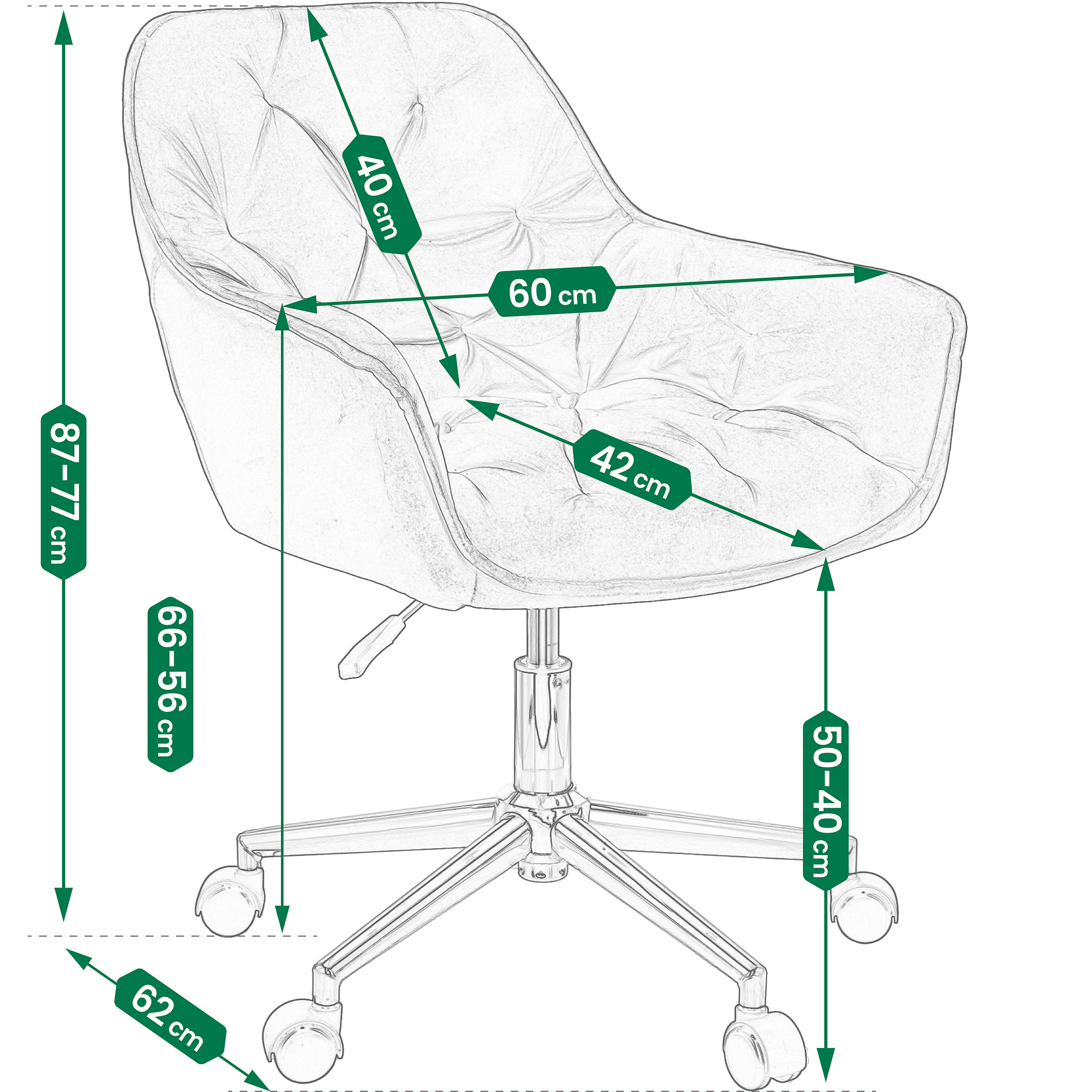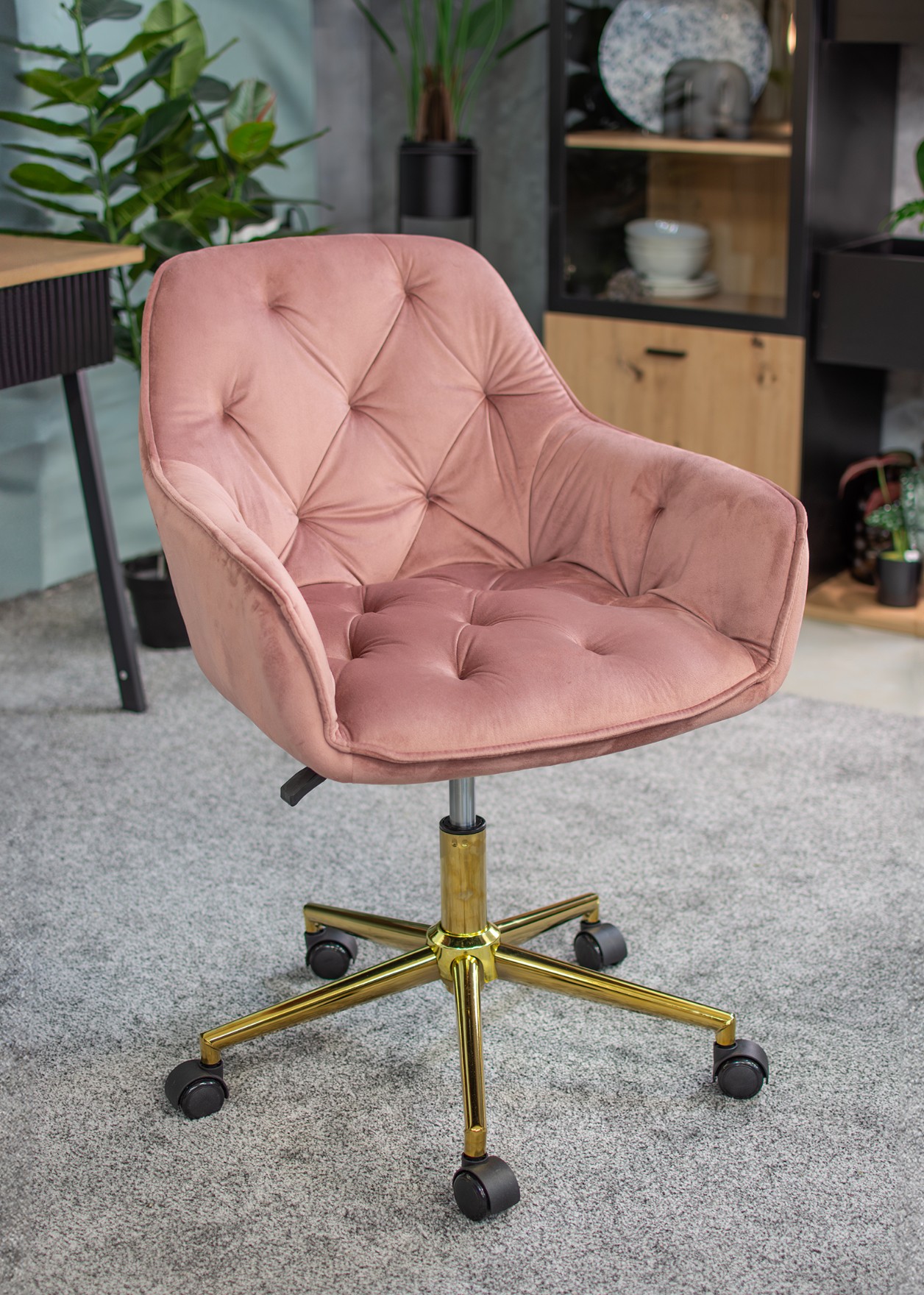 - Elegancki fotel biurowy obity miękkim welurem, łączący nowoczesny design z wyjątkowym komfortem. Regulacja wysokości i 360-stopniowy obrót zapewniają wygodę podczas pracy. Solidna podstawa na pięciu kółkach gwarantuj