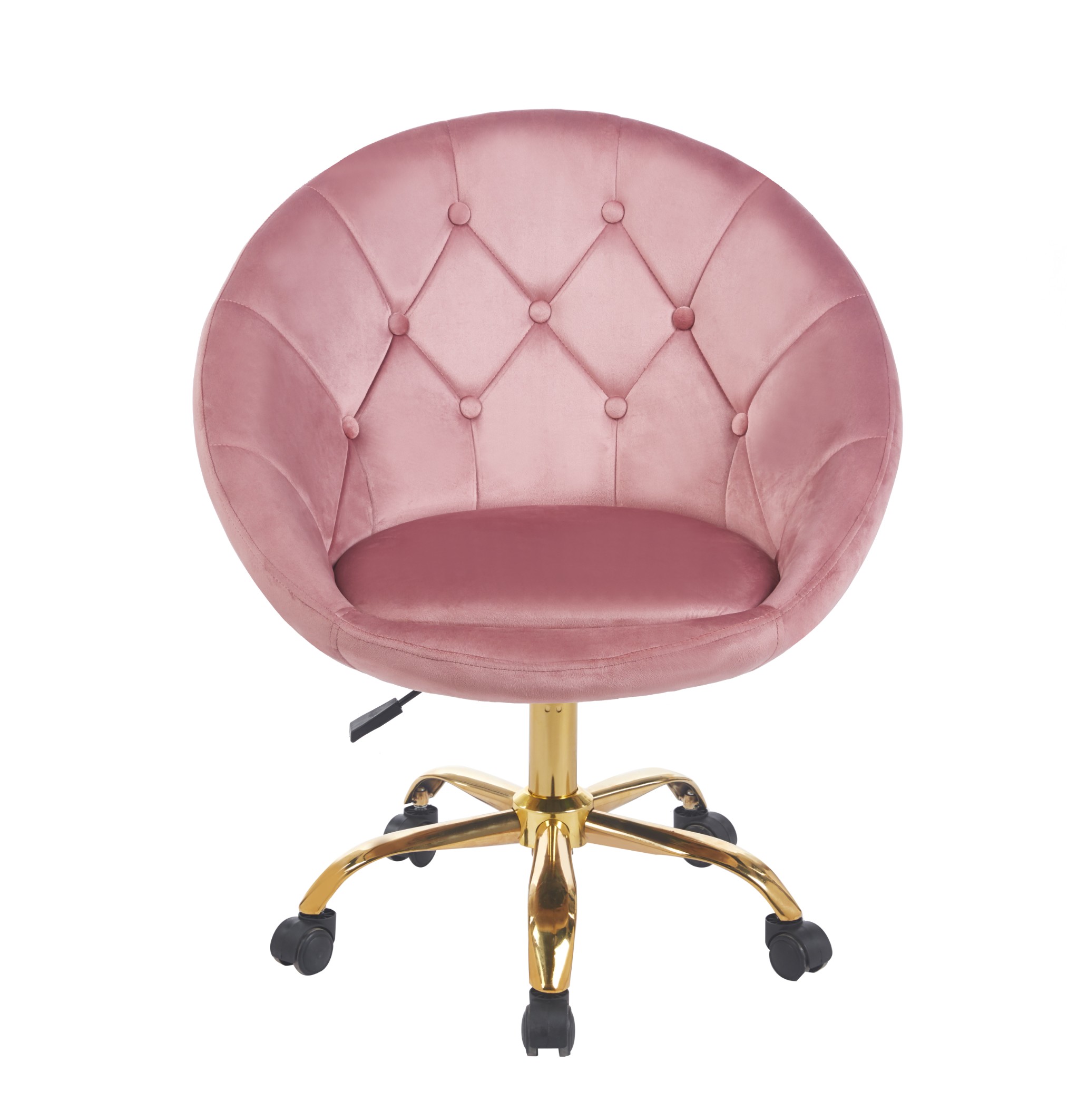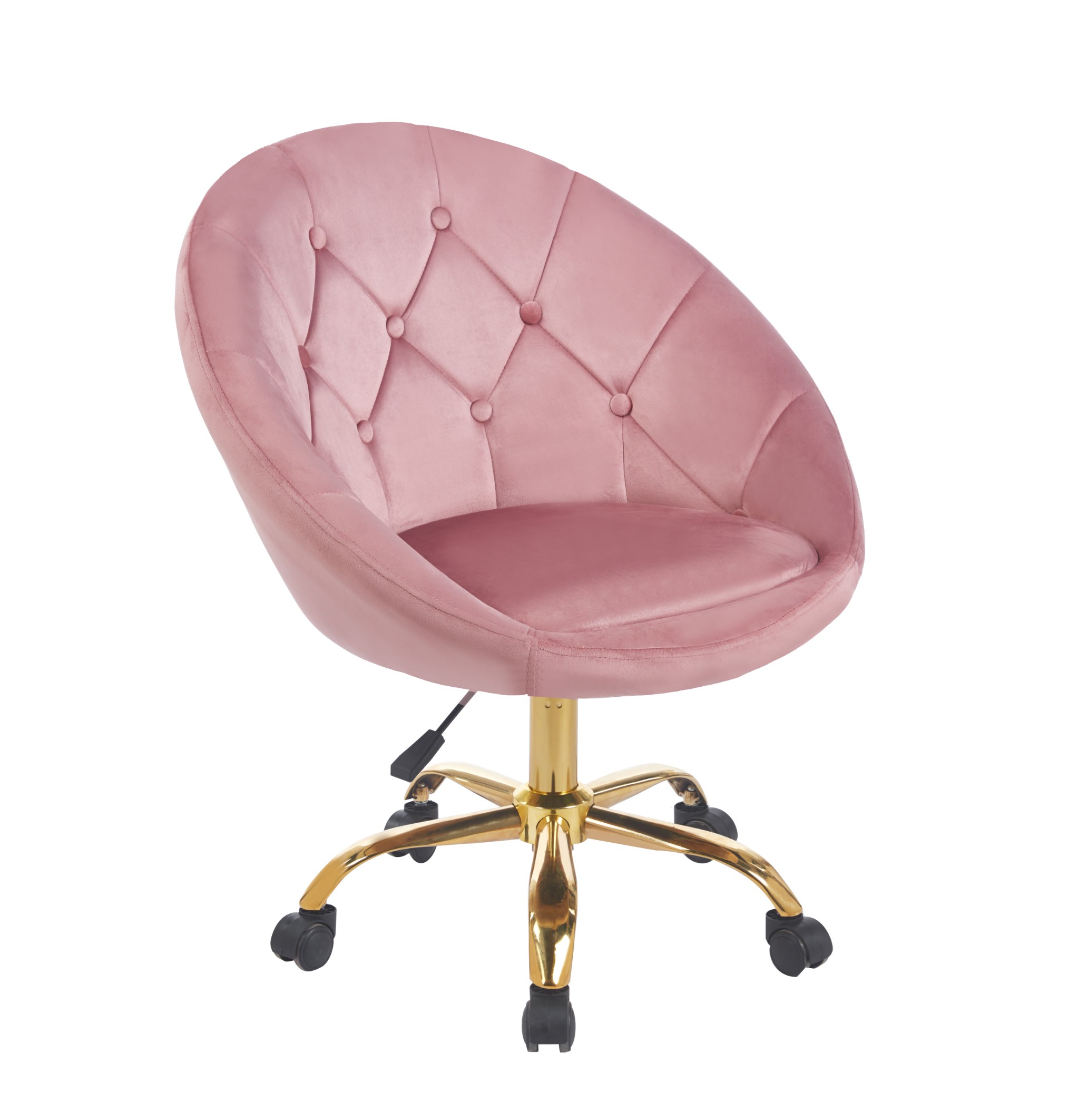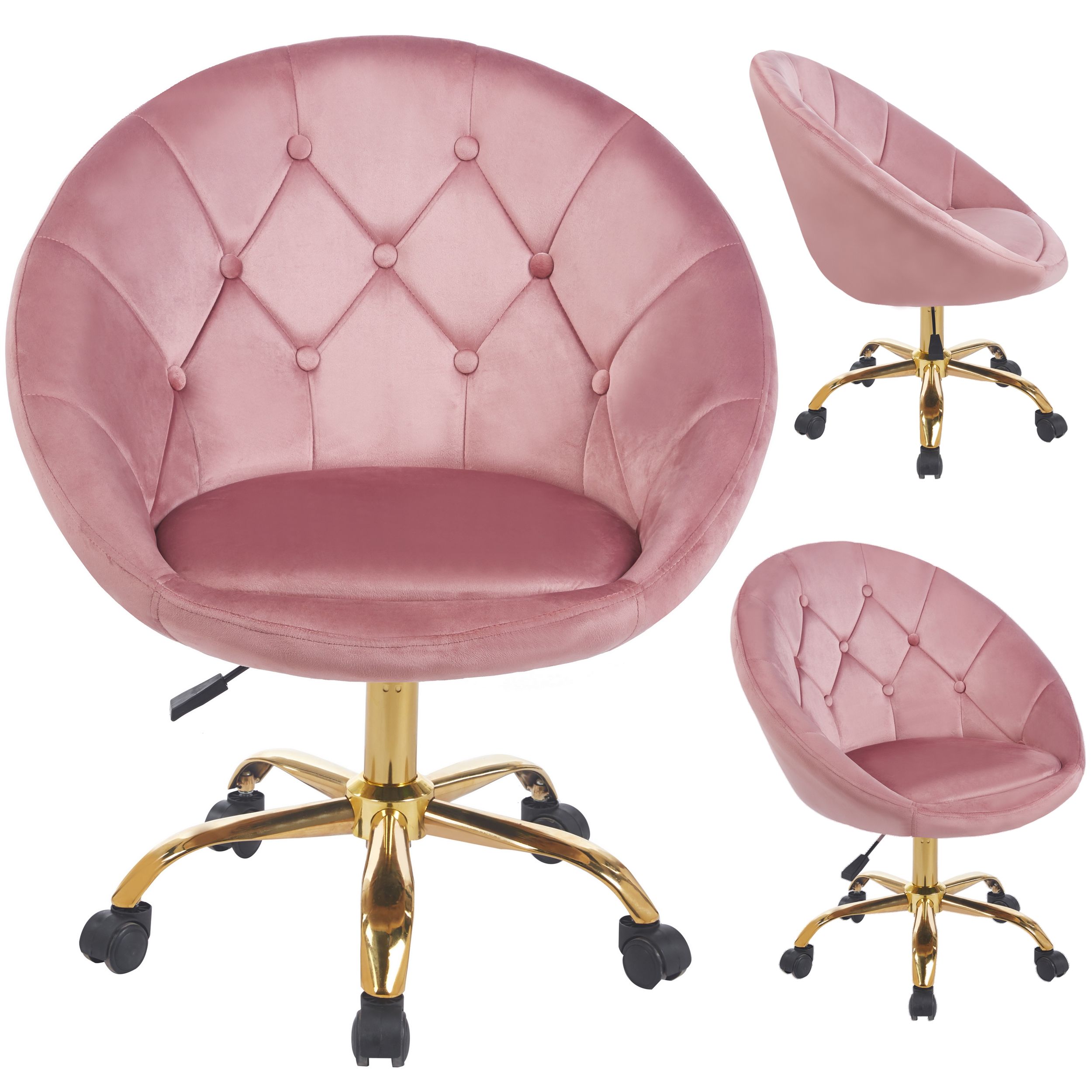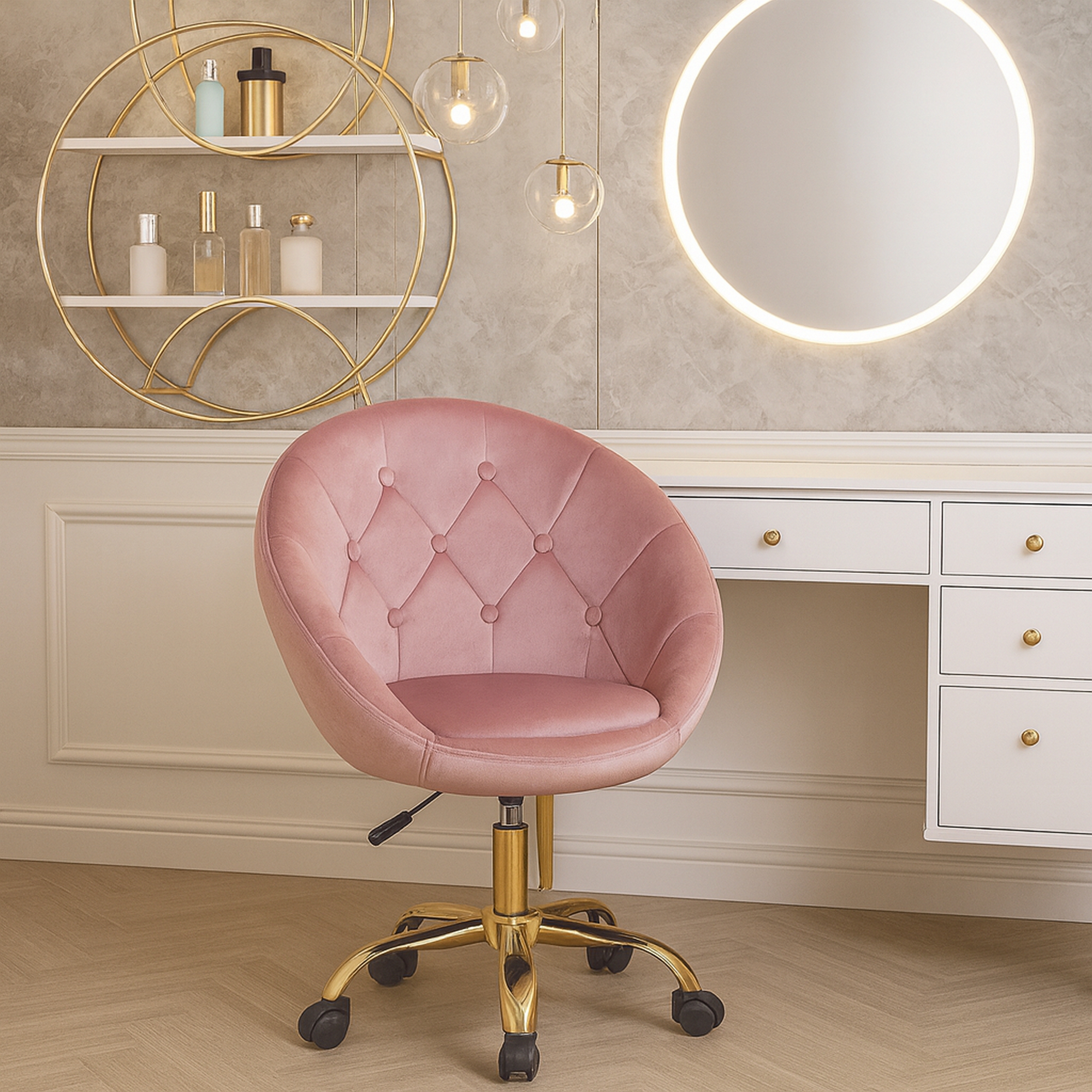 ➡️ Wyrafinowany design w połączeniu z nowoczesnością tworzą ten stylowy fotel. Obrotowy, na kółkach, wykonany z przyjemnego w dotyku weluru w klasycznym i uniwersalnym odcieniu różu, stanie się ozdobą każdego biura, toaletki, salonu kosmetycznego czy pokoju młodzieżowego.