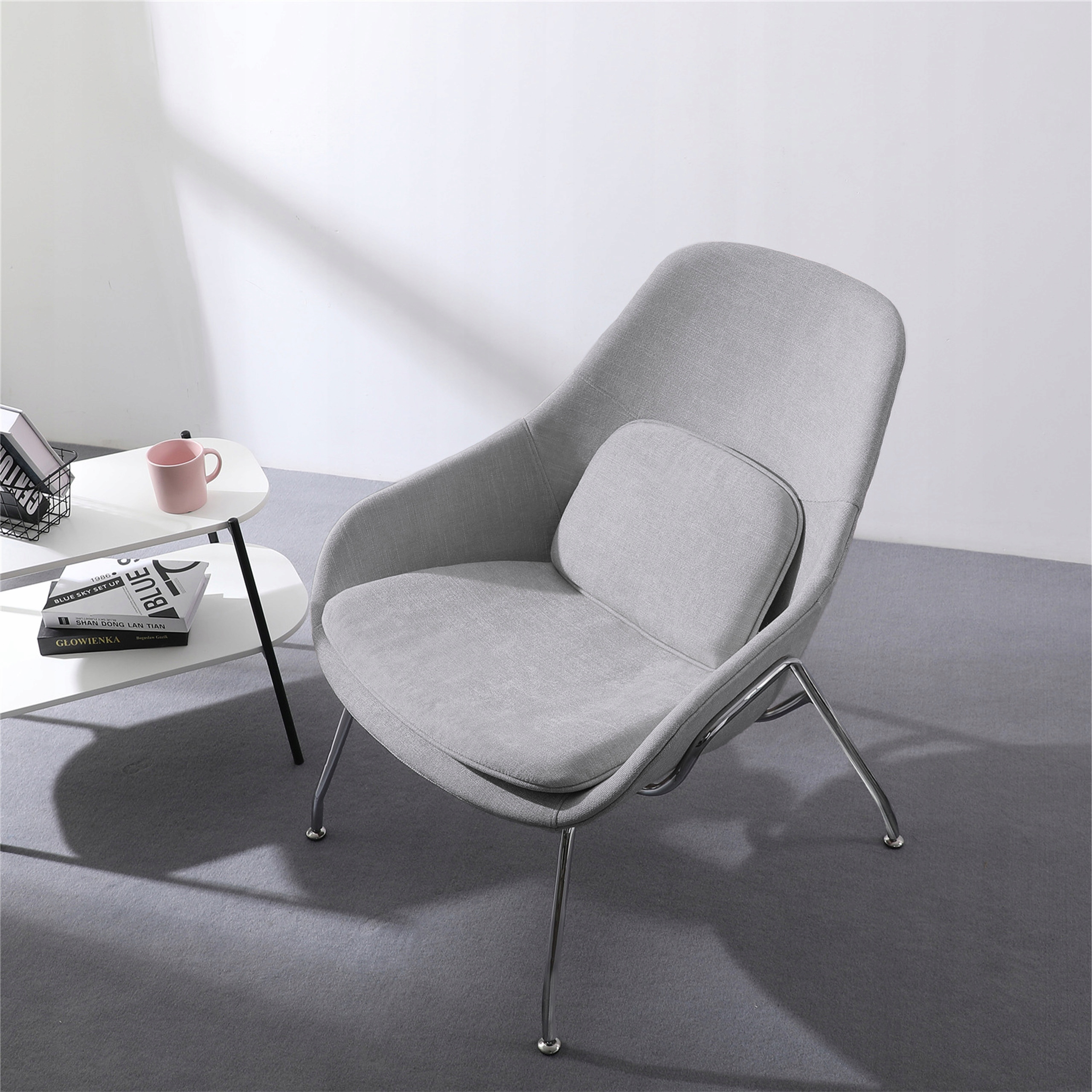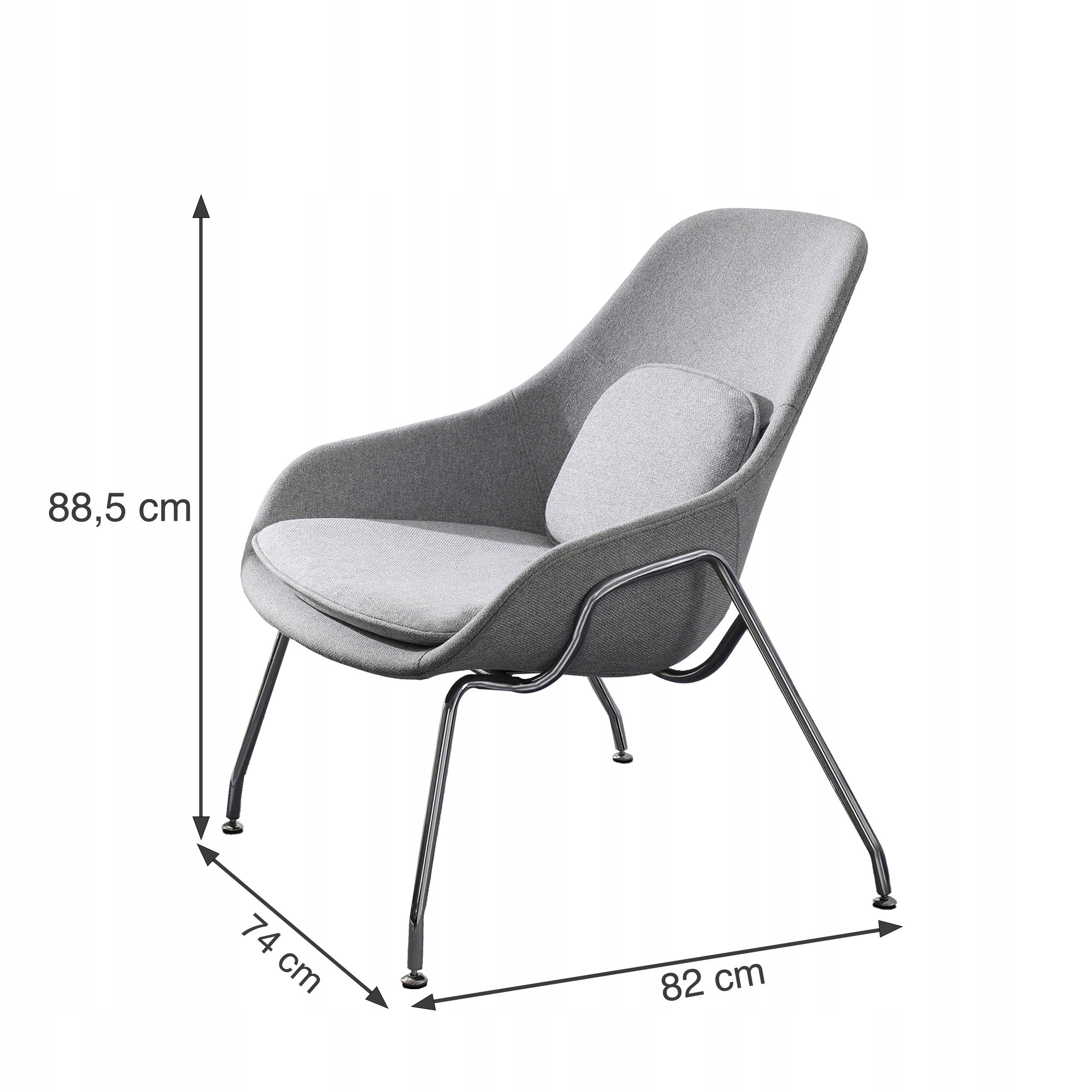 Fotel został zaprojektowany z myślą o stworzeniu idealnego mebla wypoczynkowego. Nie zajmuję on tyle miejsca co tradycyjne fotele, a dzięki zastosowaniu metalowych chromowanych nóg, mebel wydaję się lżejszy i pełny dobrego stylu.