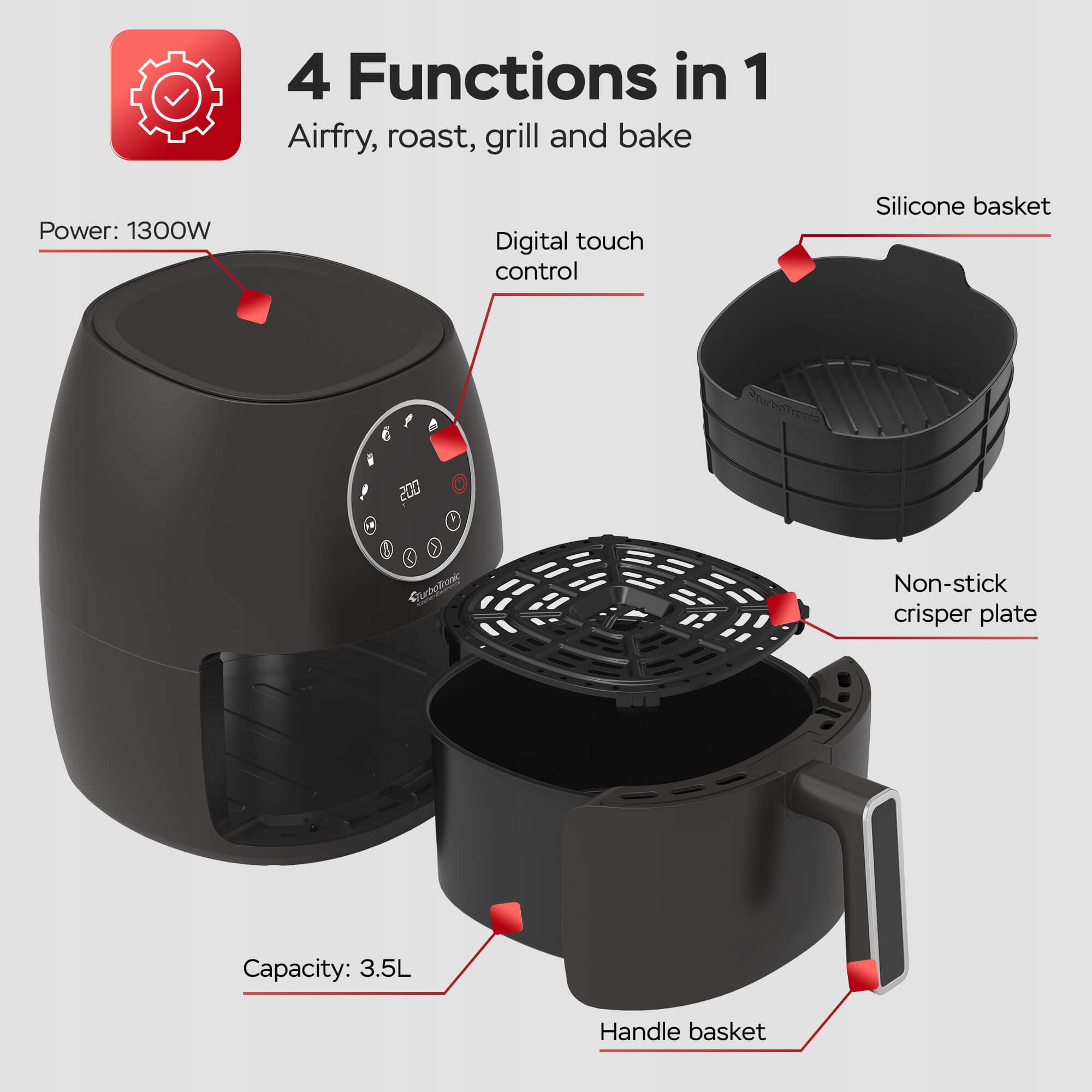 Frytkownica beztłuszczowa TurboTronic AIR Fryer frytownica 3,5L 1300W kosz silikonowy cyfrowa Czarna