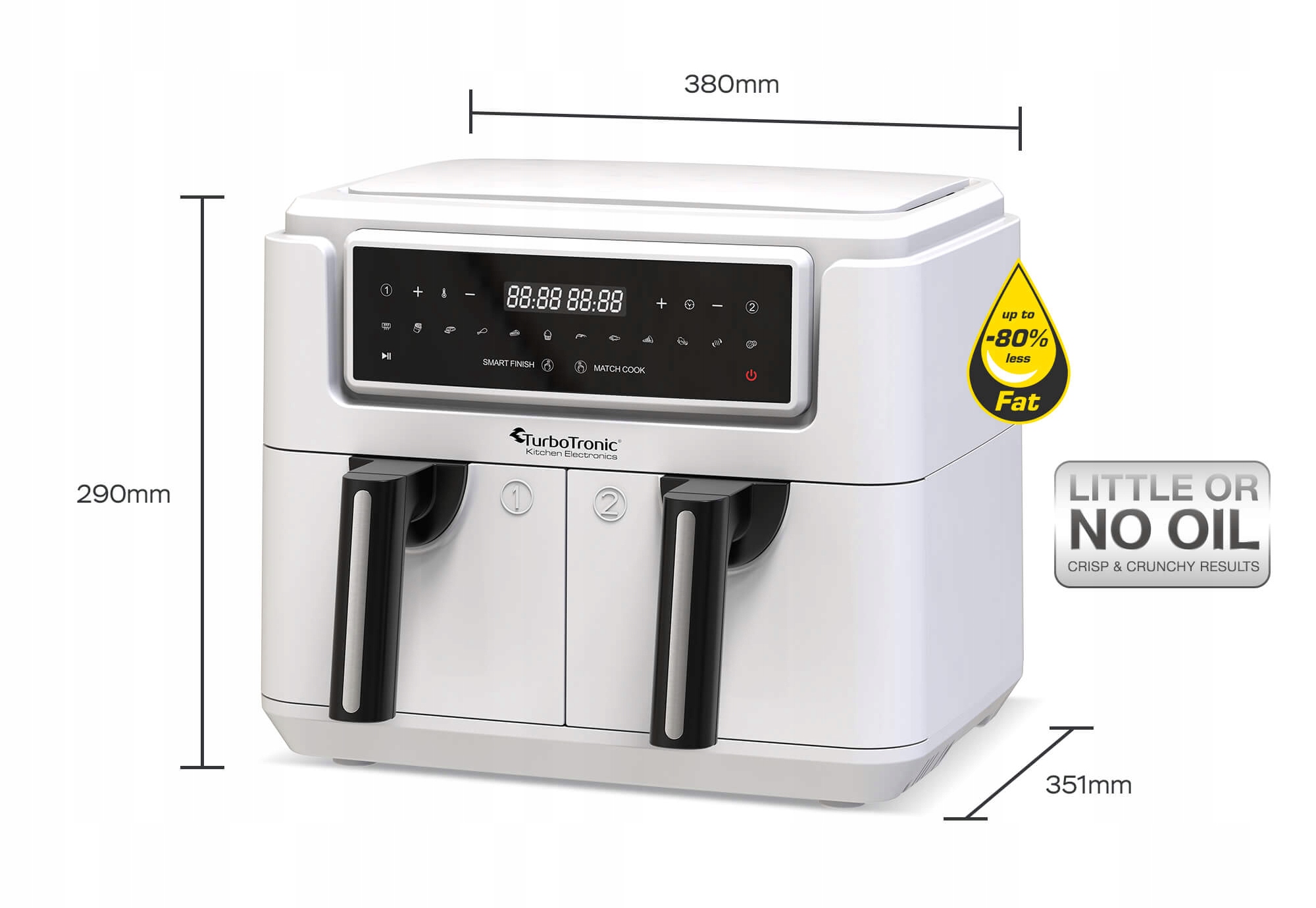 Frytownica beztłuszczowa TurboTronic air fryer dwie komory 2x 3.8L 1750w metalowe wnętrze 7,6L Biały