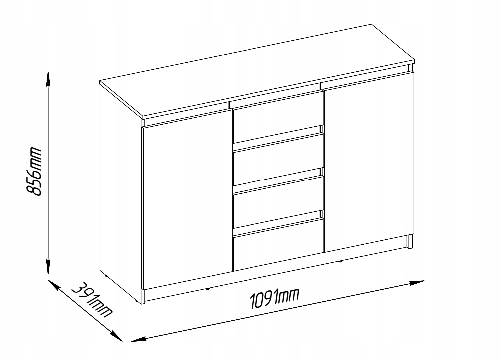 Funkcjonalna komoda w prostym stylu urządzi wnętrze sypialni, salonu lub pokoju dziecka. Konstrukcja mebla łączący minimalizm i elegancję oraz uniwersalny kolor.