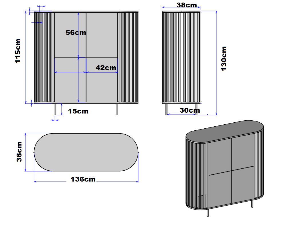 Komoda CIRKLE 136 z lamelami do salonu pokoju biura