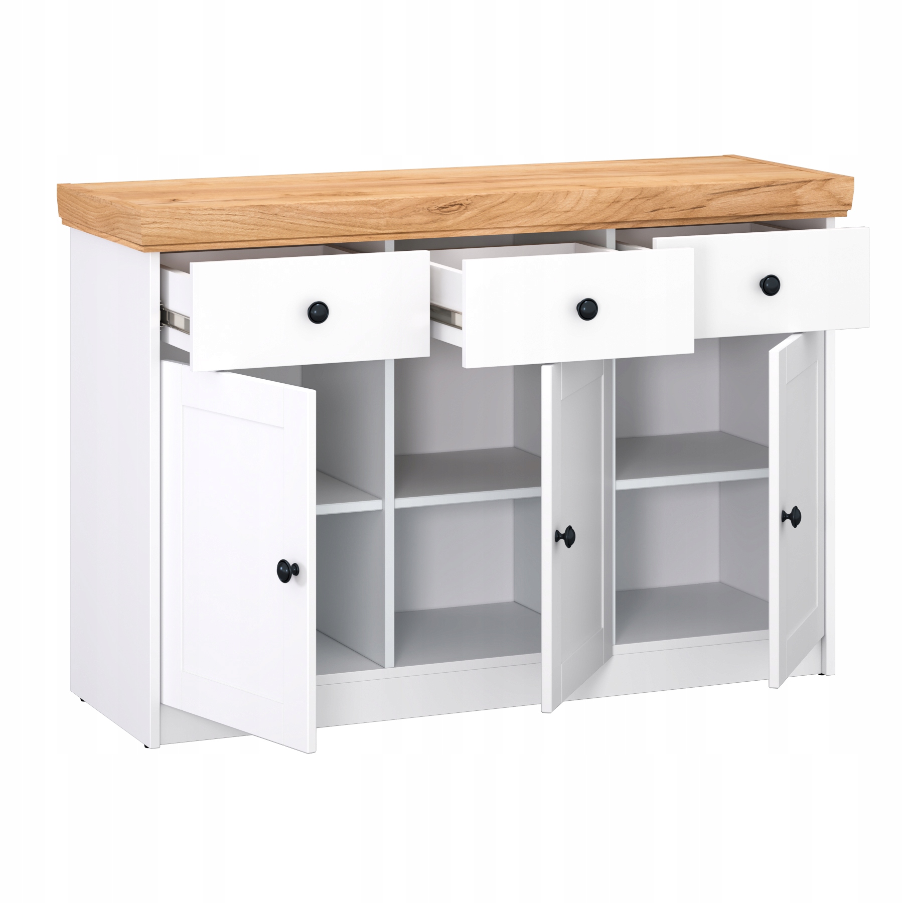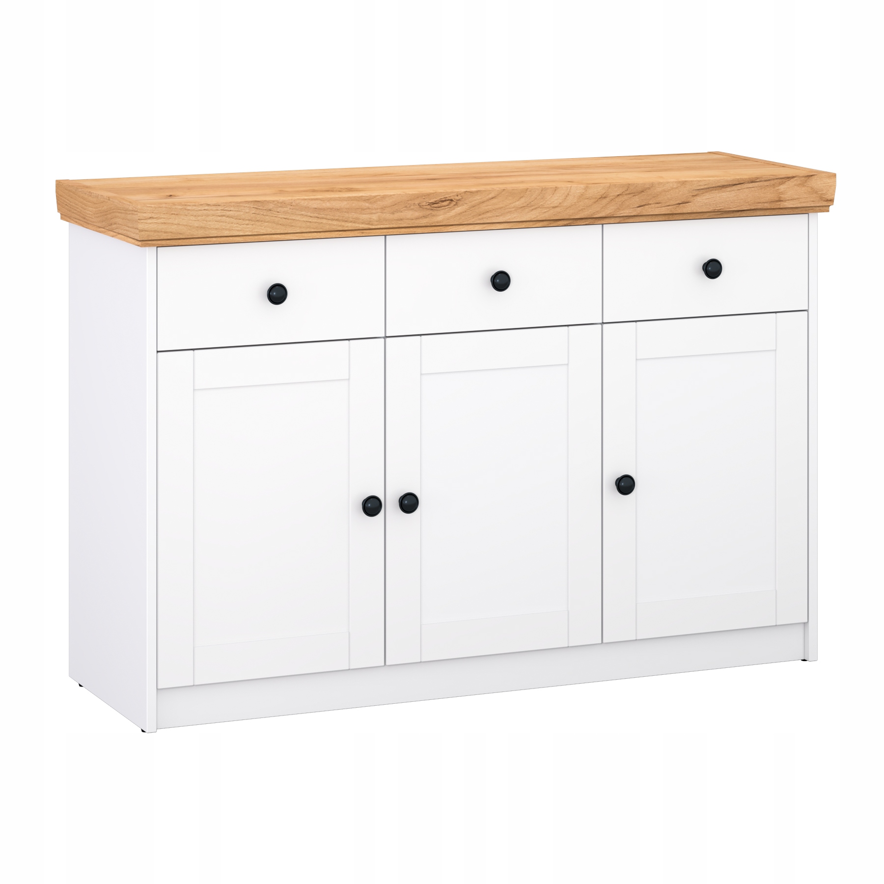 Komoda pojemna 3 drzwi 3 szuflady biały/dąb salon