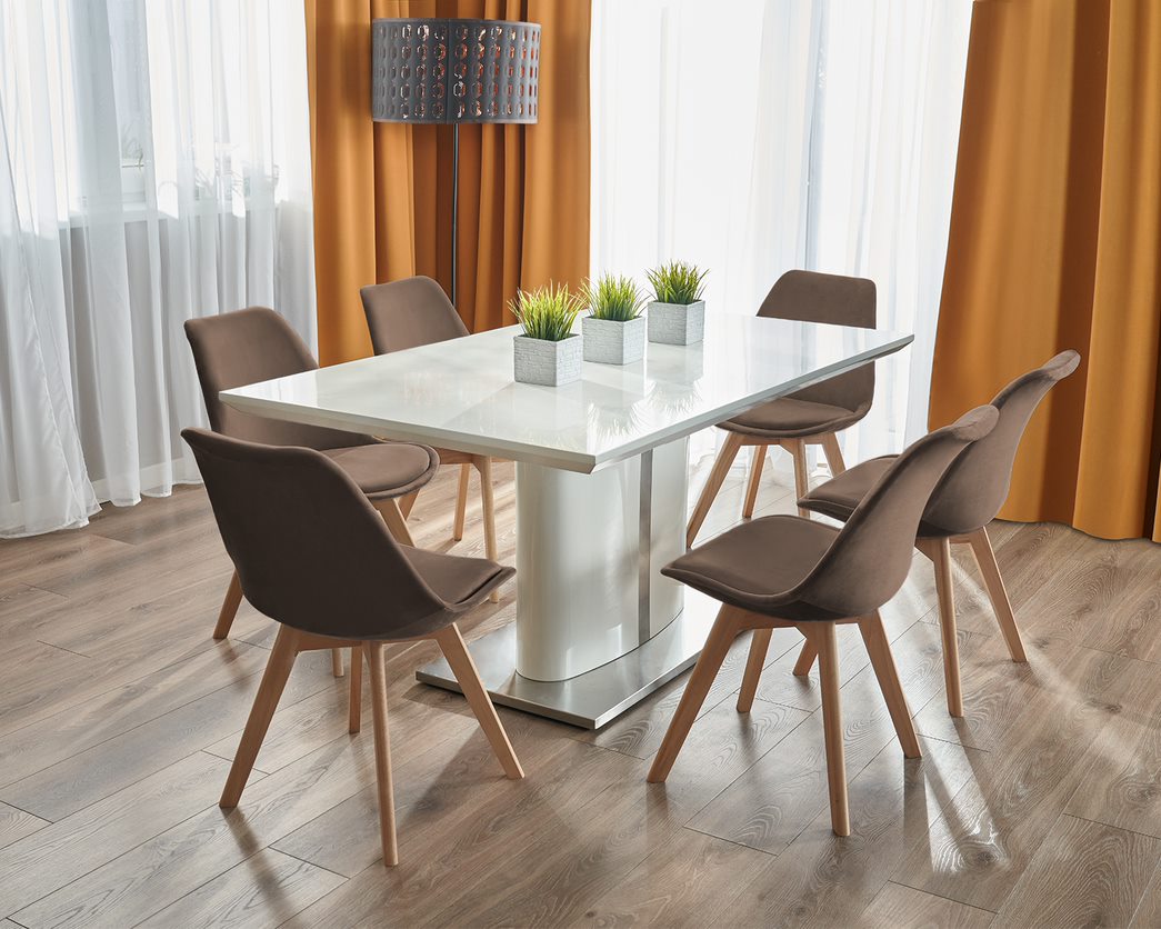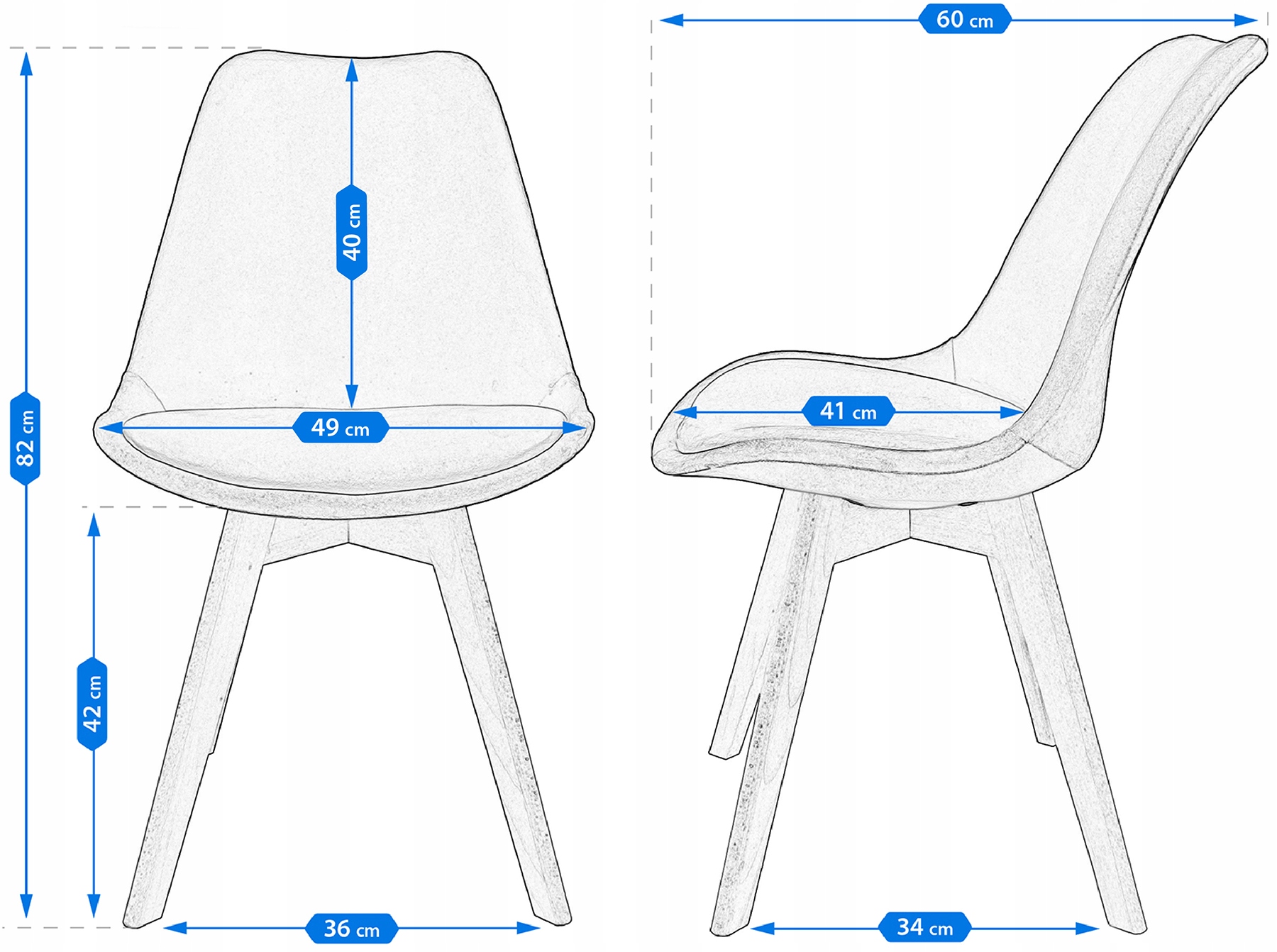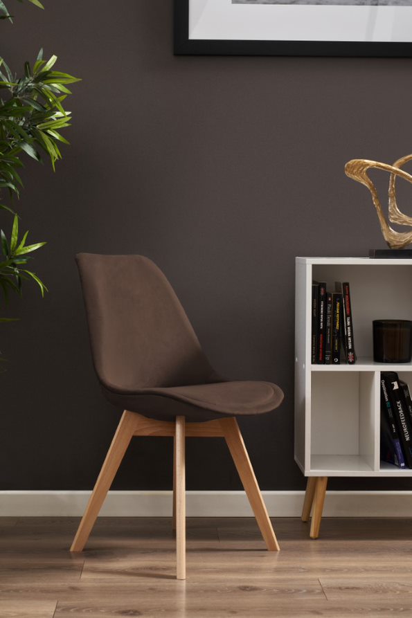 Posiada idealnie wyprofilowane oparcie pokryte welurem, które w połączeniu z miękką poduszką umieszczoną na siedzisku zapewnia dużą wygodę. Drewniane nogi wykonane z buku o jego jasnym odcieniu zapewnianą stabilność oraz wytrzymałość. Krzesło jest bardzo praktyczne i funkcjonalne.