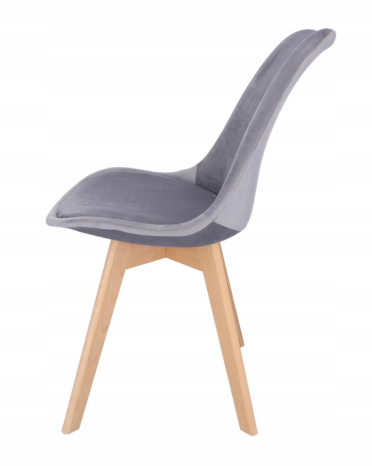 Posiada idealnie wyprofilowane oparcie pokryte welurem, które w połączeniu z miękką poduszką umieszczoną na siedzisku zapewnia dużą wygodę. Drewniane nogi wykonane z buku o jego jasnym odcieniu zapewnianą stabilność oraz wytrzymałość. Krzesło jest bardzo praktyczne i funkcjonalne.