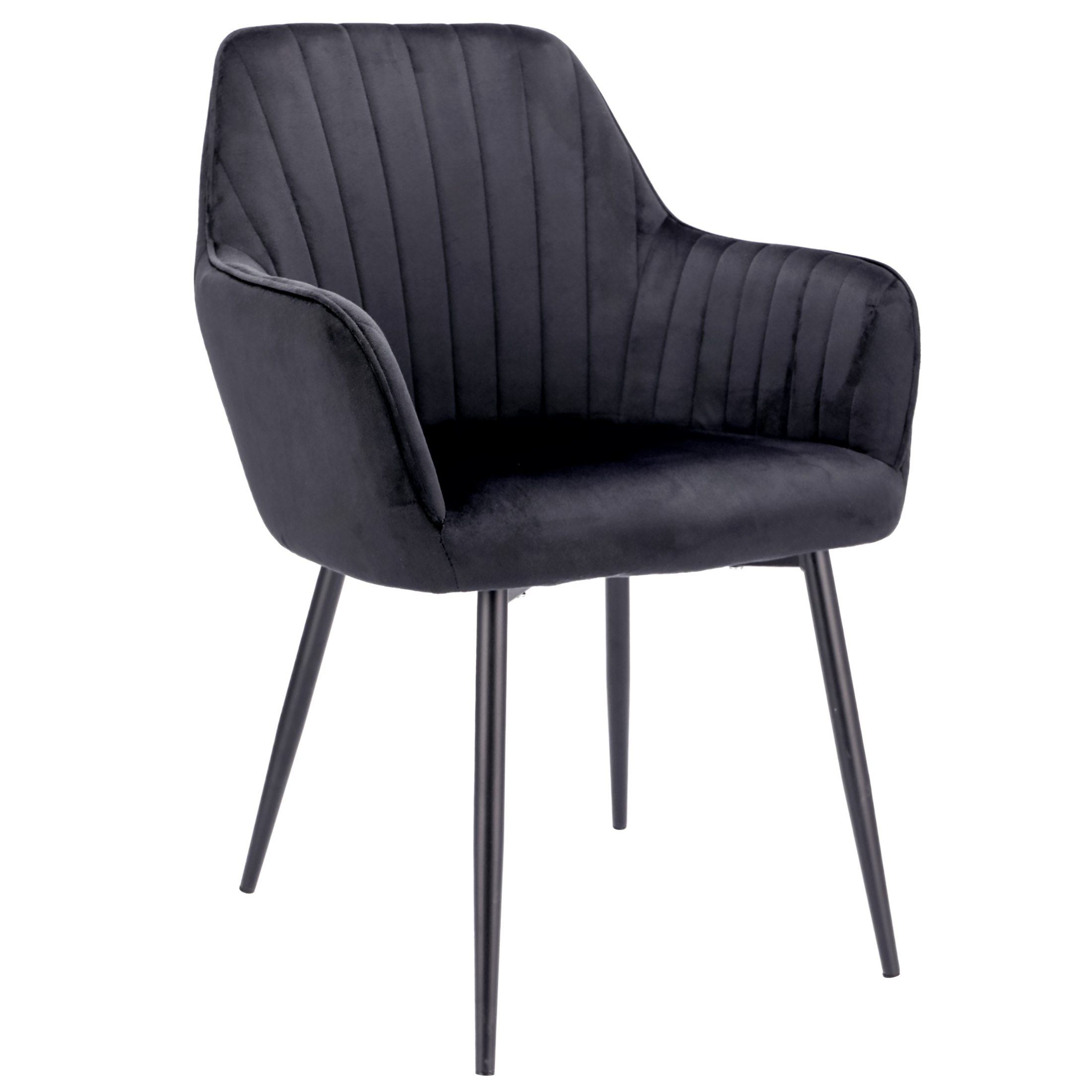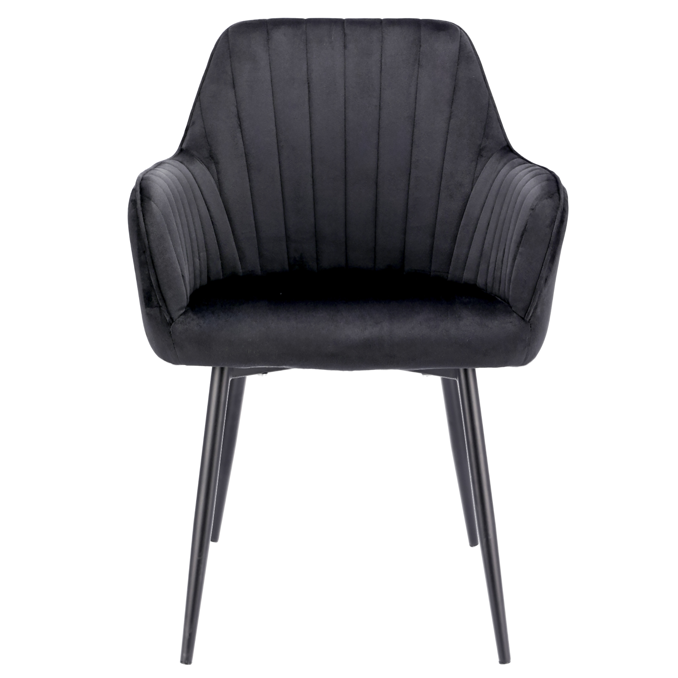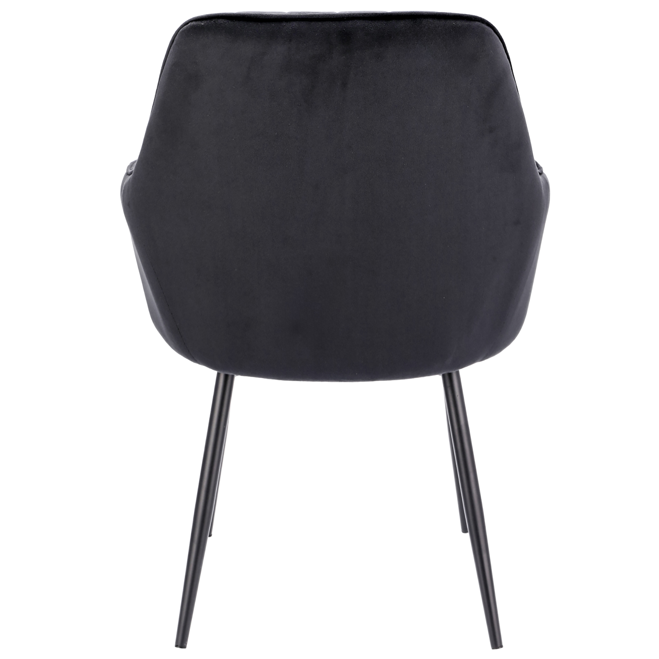 ➡️ Solidne, welurowe krzesło wyposażone zostało w miękkie siedzisko oraz wysokie oparcie z ozdobnymi pikowaniami. Całość wygląda lekko za sprawą smukłych czarnych nóżek, które nadają wizualnej lekkości, a zarazem zapewniają idealną stabilność. Wysokość oparcia, podłokietniki oraz jego miękkość sprawia, że fotel jest niesamowicie wygodny.