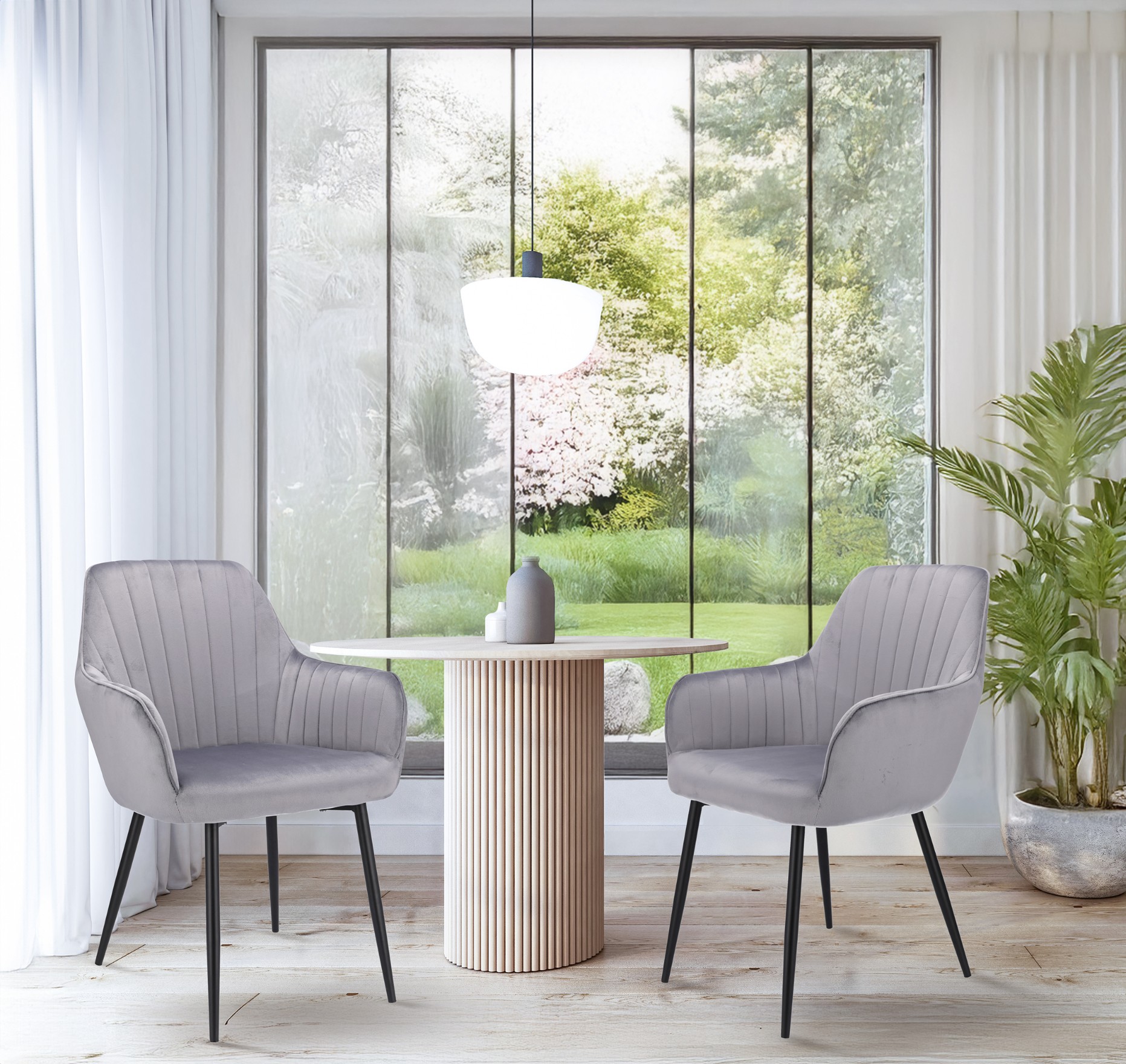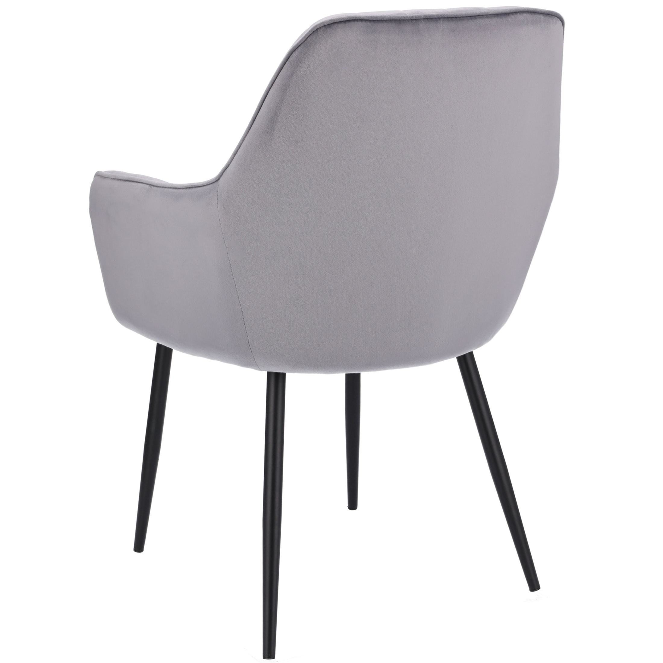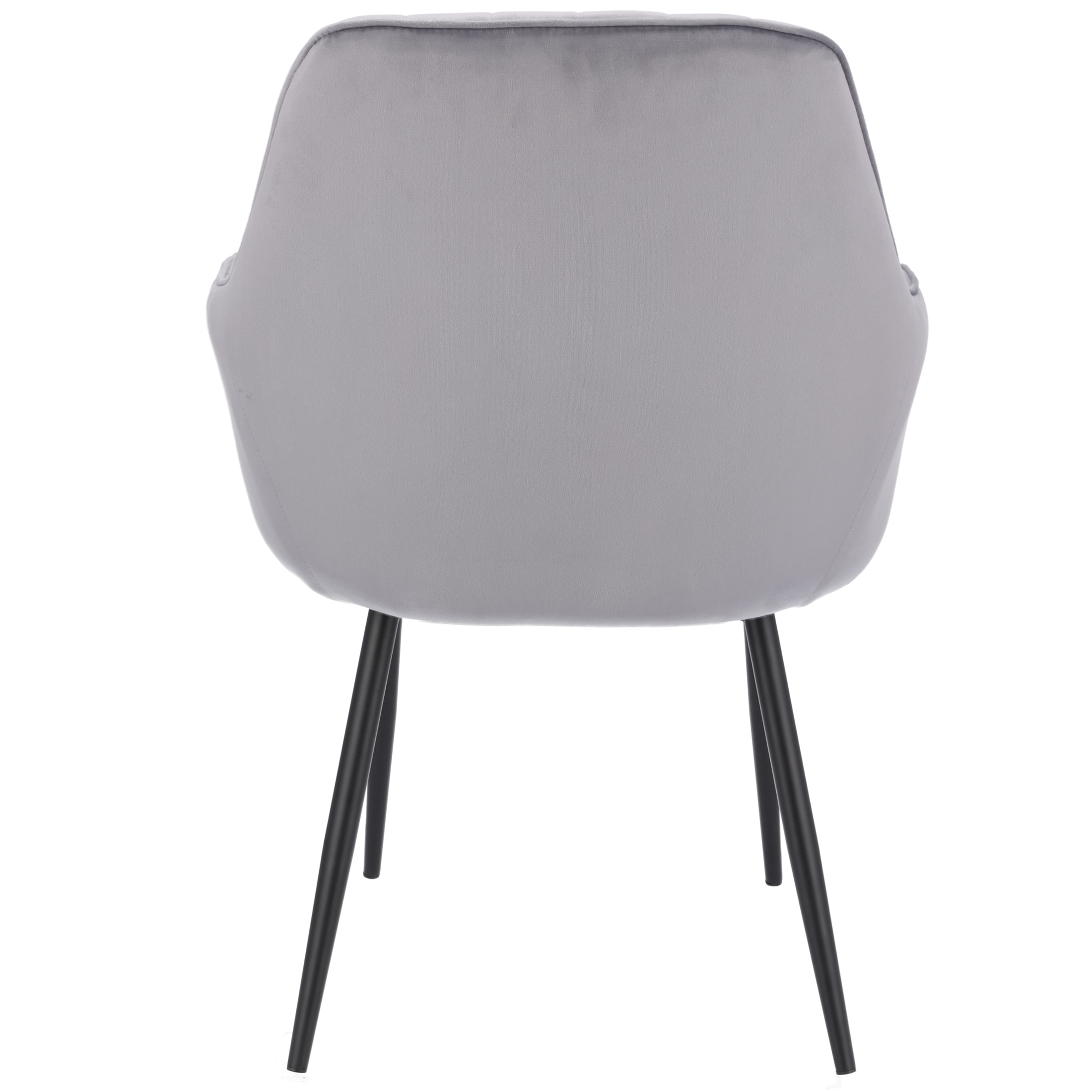 ➡️ Solidne, welurowe krzesło wyposażone zostało w miękkie siedzisko oraz wysokie oparcie z ozdobnymi pikowaniami. Całość wygląda lekko za sprawą smukłych czarnych nóżek, które nadają wizualnej lekkości, a zarazem zapewniają idealną stabilność. Wysokość oparcia, podłokietniki oraz jego miękkość sprawia, że fotel jest niesamowicie wygodny.