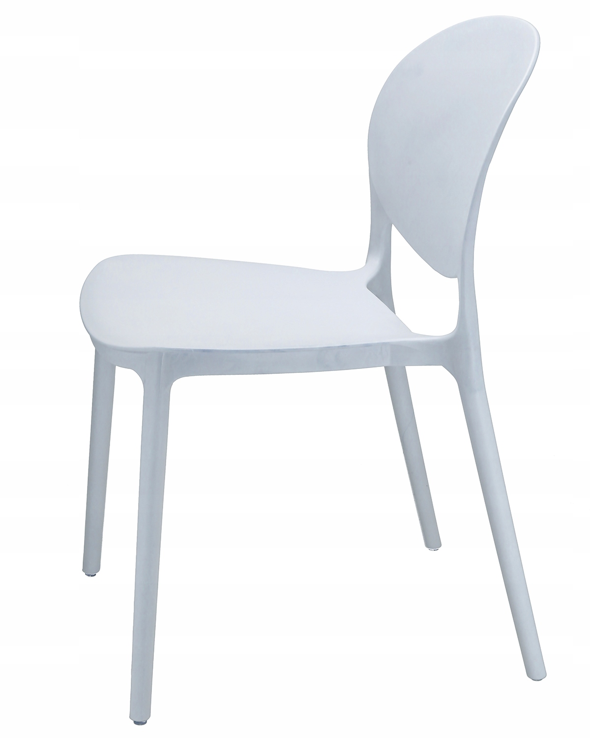- Owalne oparcie jak i całe krzesło wykonane jest z polipropylenu co zapewnia mu długotrwałą wytrzymałość, a proste nogi zapewniają idealną s