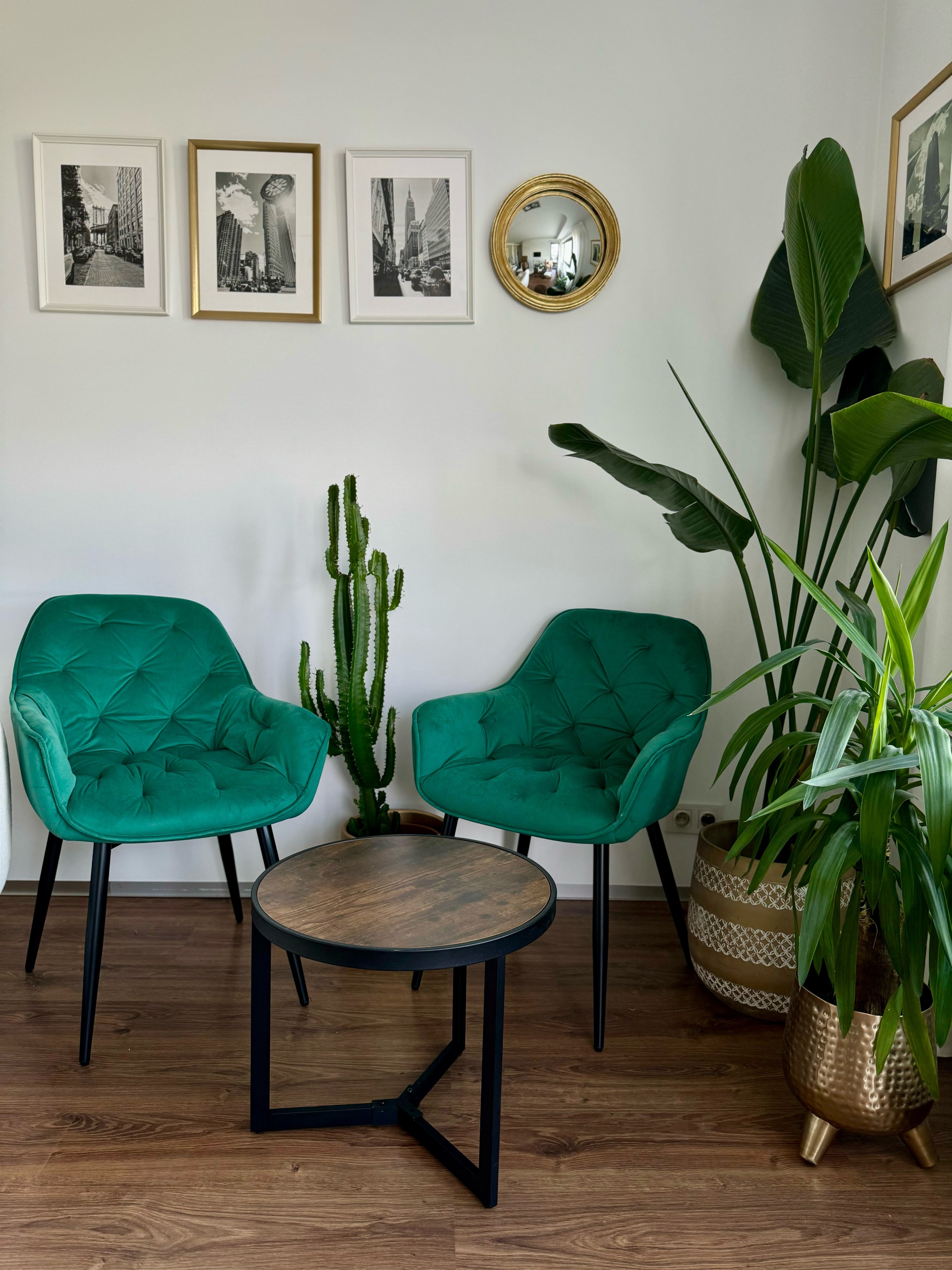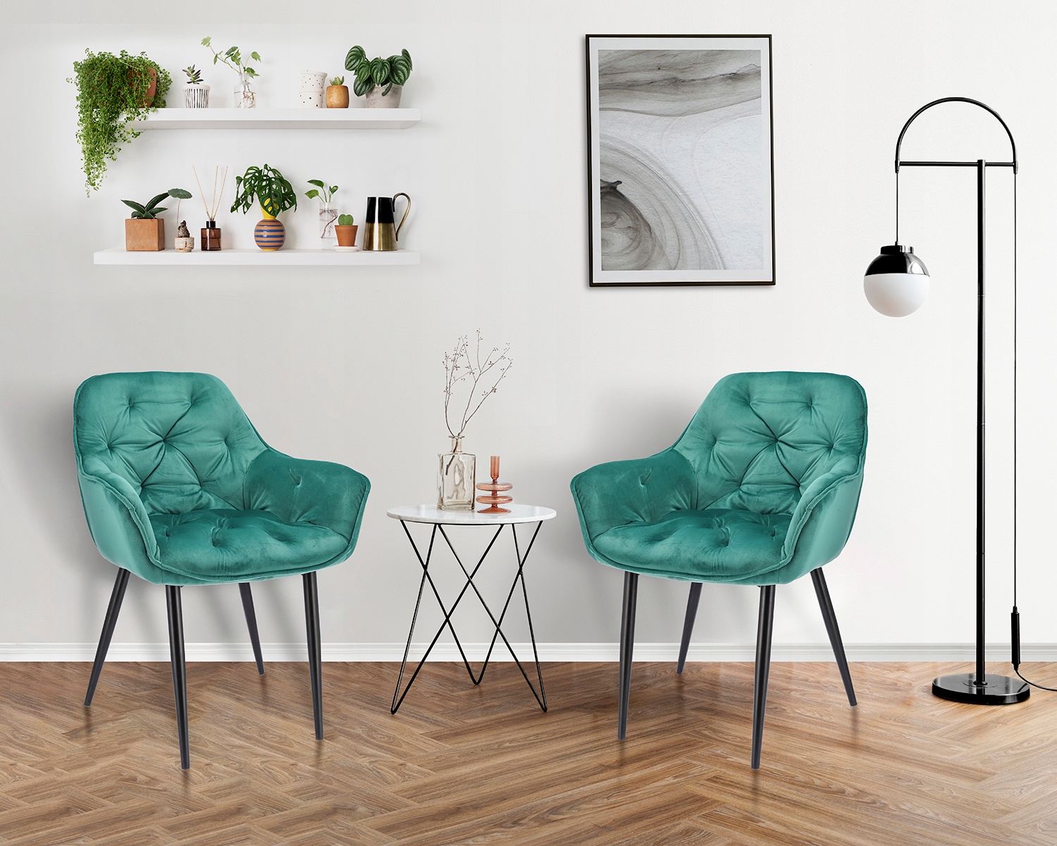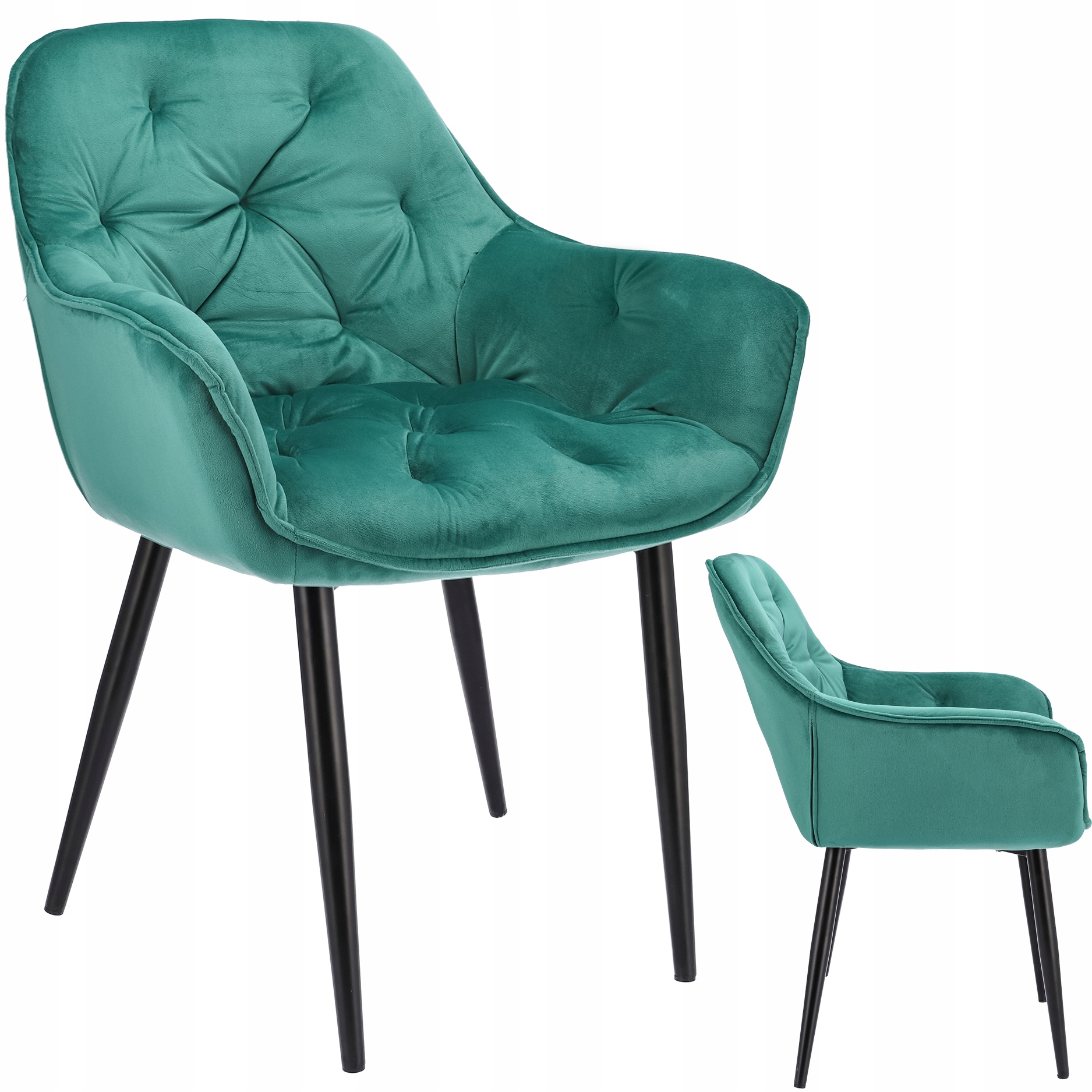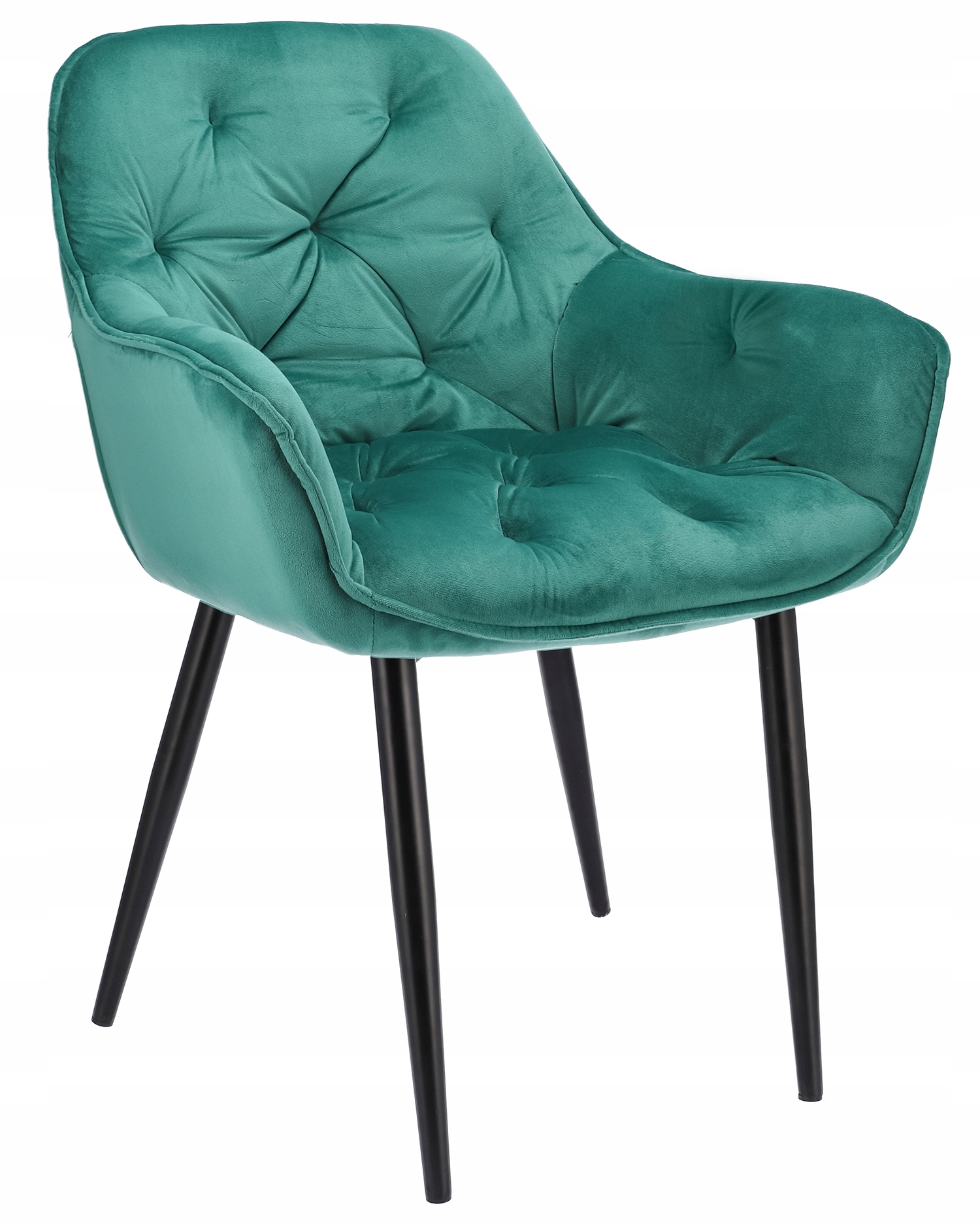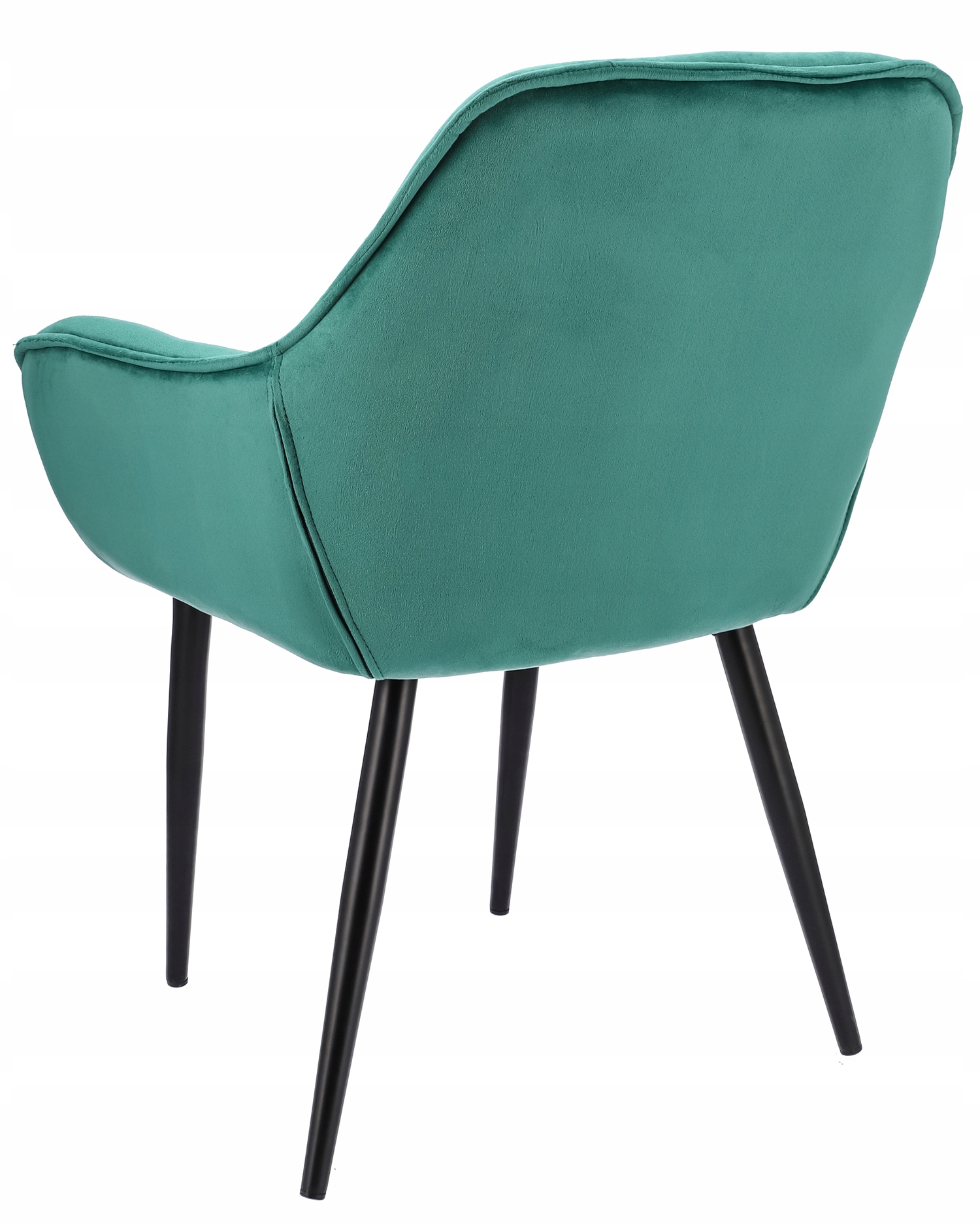 ➡️ Solidne, welurowe krzesło wyposażone zostało w miękkie siedzisko oraz wysokie oparcie z ozdobnymi pikowaniami. Całość wygląda lekko za sprawą smukłych czarnych nóżek, które nadają wizualnej lekkości, a zarazem zapewniają idealną stabilność. Wysokość oparcia, podłokietniki oraz jego miękkość sprawia, że fotel jest niesamowicie wygodny.