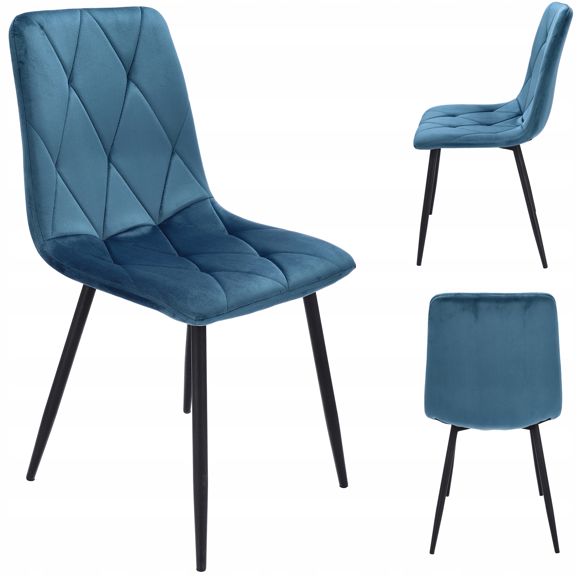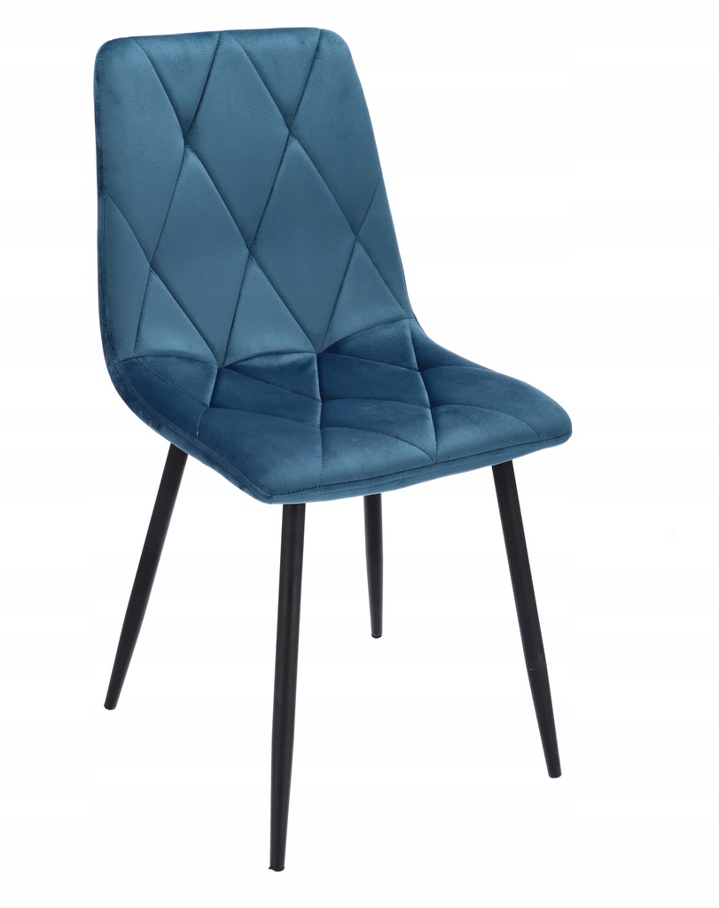 Krzesło tapicerowane jest welurem, a po wewnętrznej stronie pikowane regularnymi przeszyciami w romby. Wysokie i smukłe nóżki w czarnym kolorze wyglądają bardzo szykownie oraz gwarantują idealną stabilność.