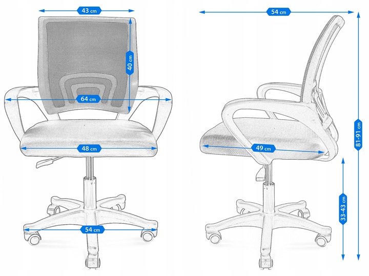 ➡️ Idealnie wyprofilowane oparcie w połączeniu z miękkim siedziskiem zapewnia dużą wygodę, a stabilna pięcioramienna podstawa zakończona niewielkimi plastikowymi kółkami daje dużą stabilność oraz zabezpiecza powierzchnię przed zarysowaniem. Krzesło posiada siłownik, który pozwala dostosować wysokość siedzenia do wymaganych potrzeb.