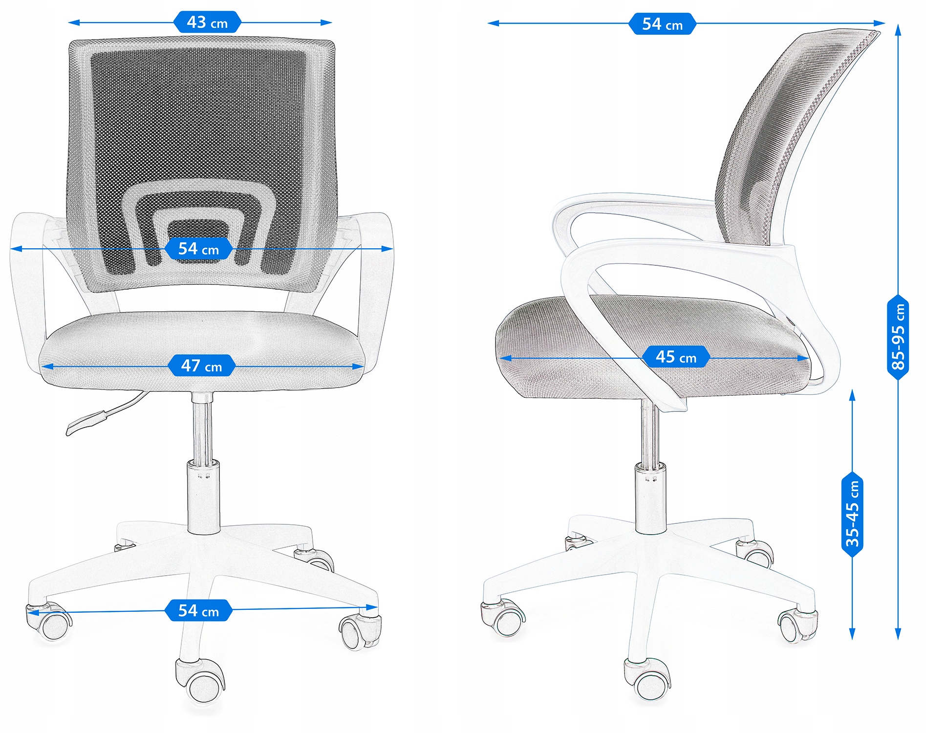 - Krzesło SMART to niebieskie krzesło obrotowe, które łączy w sobie funkcjonalność z nowoczesną formą.