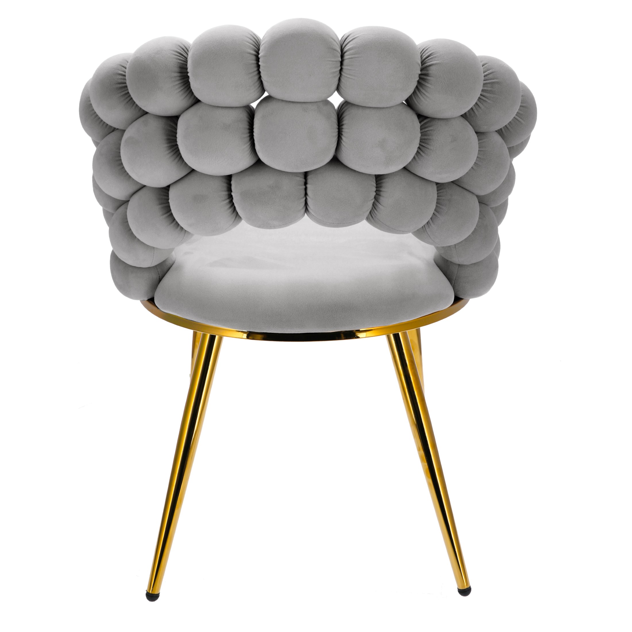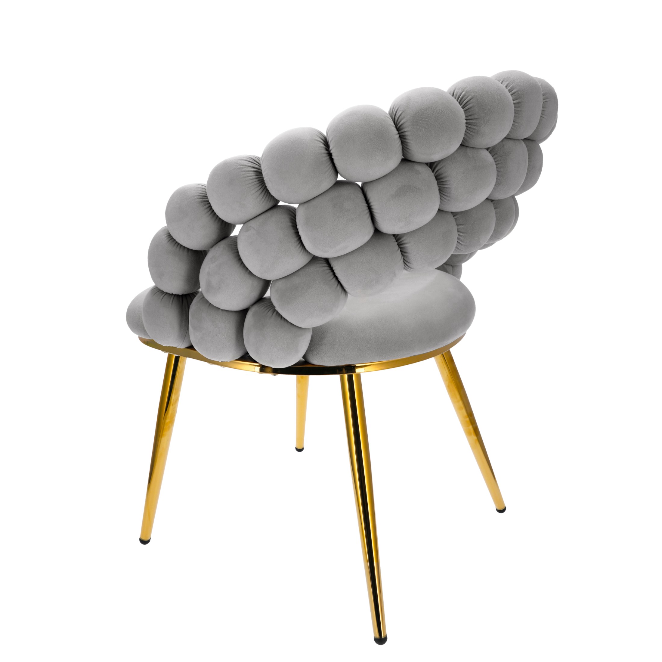 - Solidne, welurowe krzesło wyposażone zostało w miękkie siedzisko oraz wysokie oparcie z ozdobnymi pikowaniami we wzór jodełki. Całość wygląda lekko za sprawą smukłych