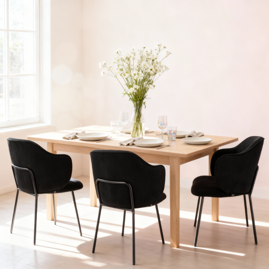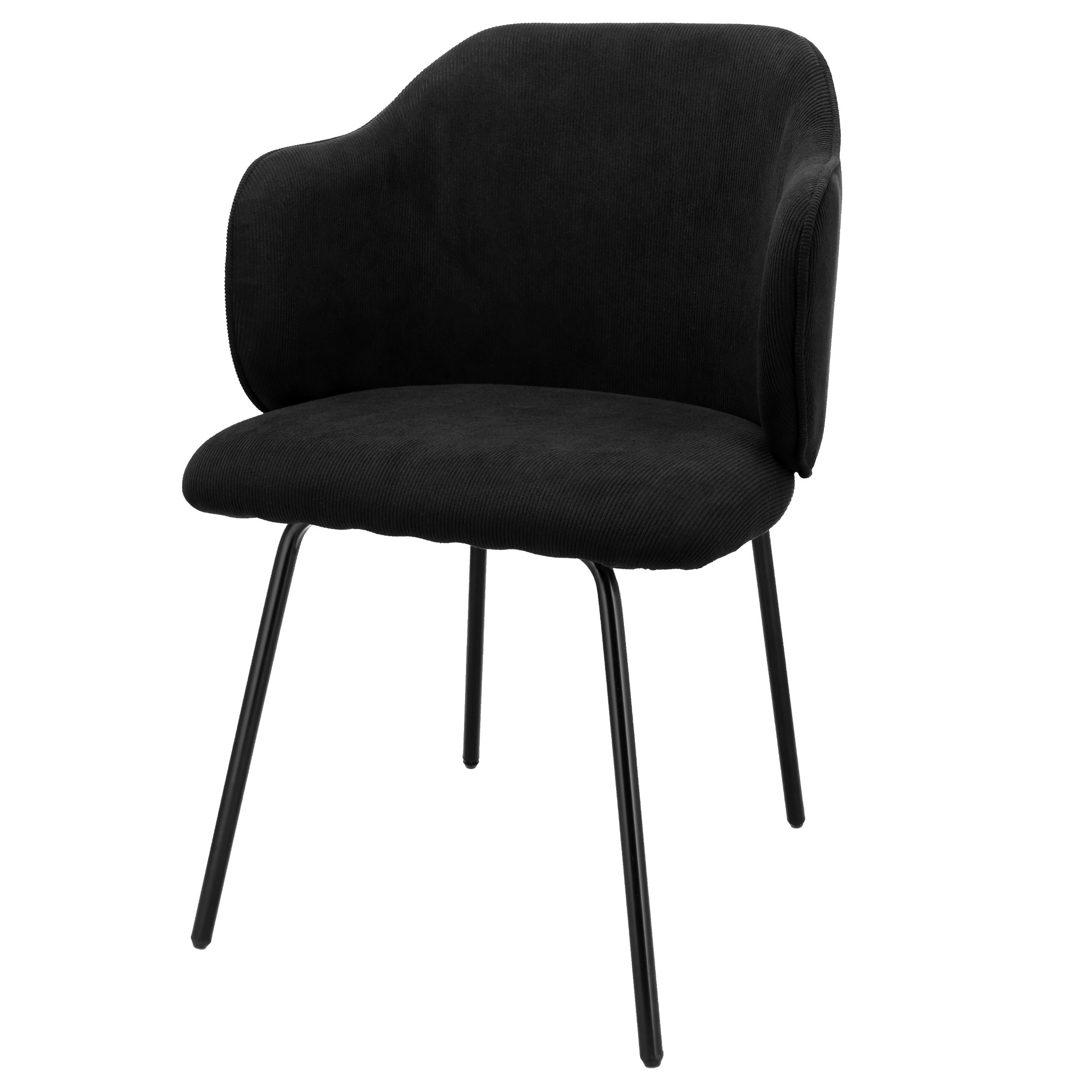 - To nie jest zwykły mebel, to prawdziwa ozdoba wnętrza, która przyciąga wzrok i nadaje przestrzeni charakteru. Miękka tapicerka o sztruksowej fakturze w modnej, stonowanej czerni sprawia, że każdy kontakt z tym krzesłem to czysta przyjemność. Zintegrowane podłokietniki i perfekcyjnie wyprofilowane oparcie gwarantują wygodę na najwyższym poziomie, a solidne metalowe nogi dodają mu lekkości i stabilności jednocześnie.