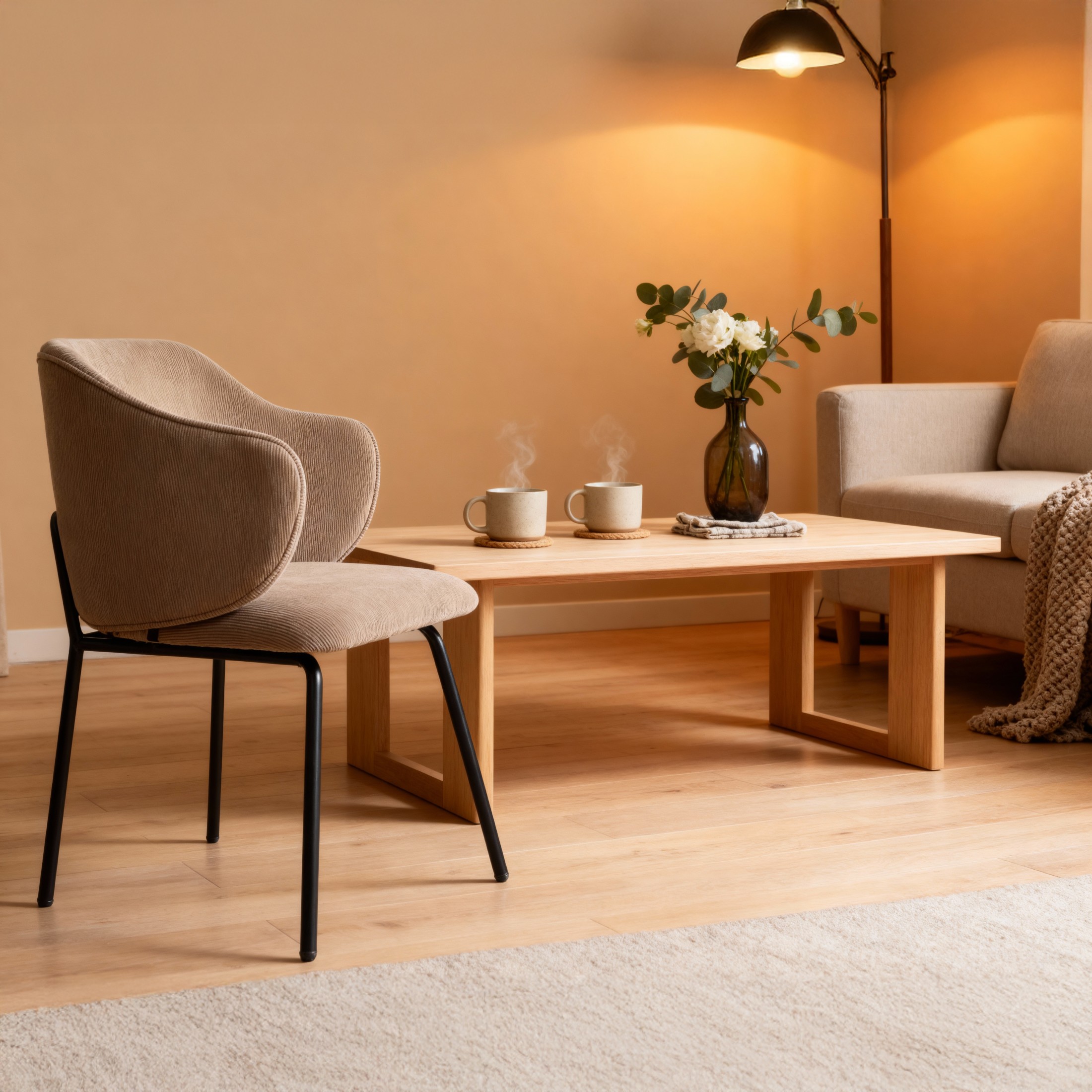 - To nie jest zwykły mebel, to prawdziwa ozdoba wnętrza, która przyciąga wzrok i nadaje przestrzeni charakteru. Miękka tapicerka o sztruksowej fakturze w modnym, stonowanym odcieniu beżu sprawia, że każdy kontakt z tym krzesłem to czysta przyjemność. Zintegrowane podłokietniki i perfekcyjnie wyprofilowane oparcie gwarantują wygodę na najwyższym poziomie, a solidne metalowe nogi dodają mu lekkości i stabilności jednocześnie.