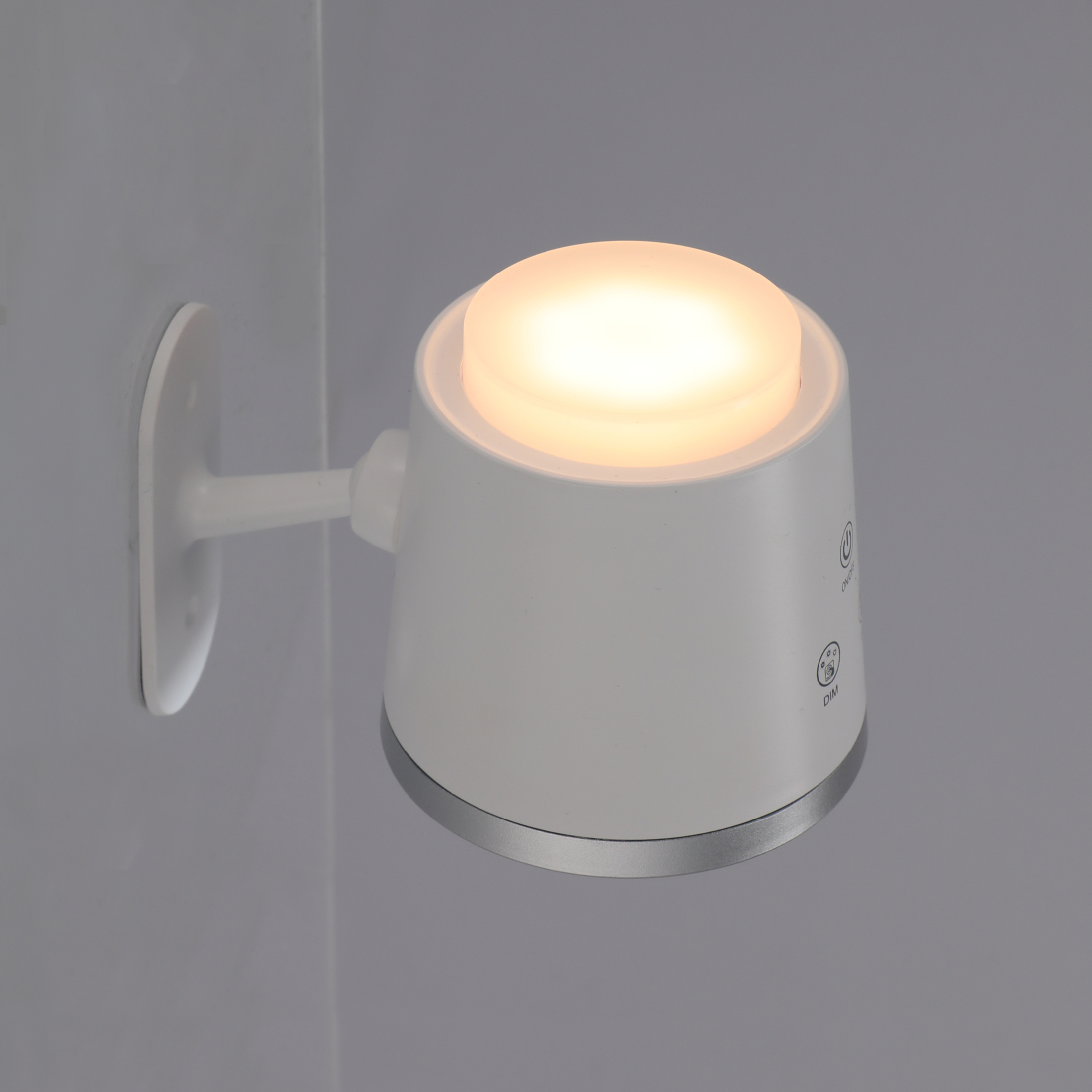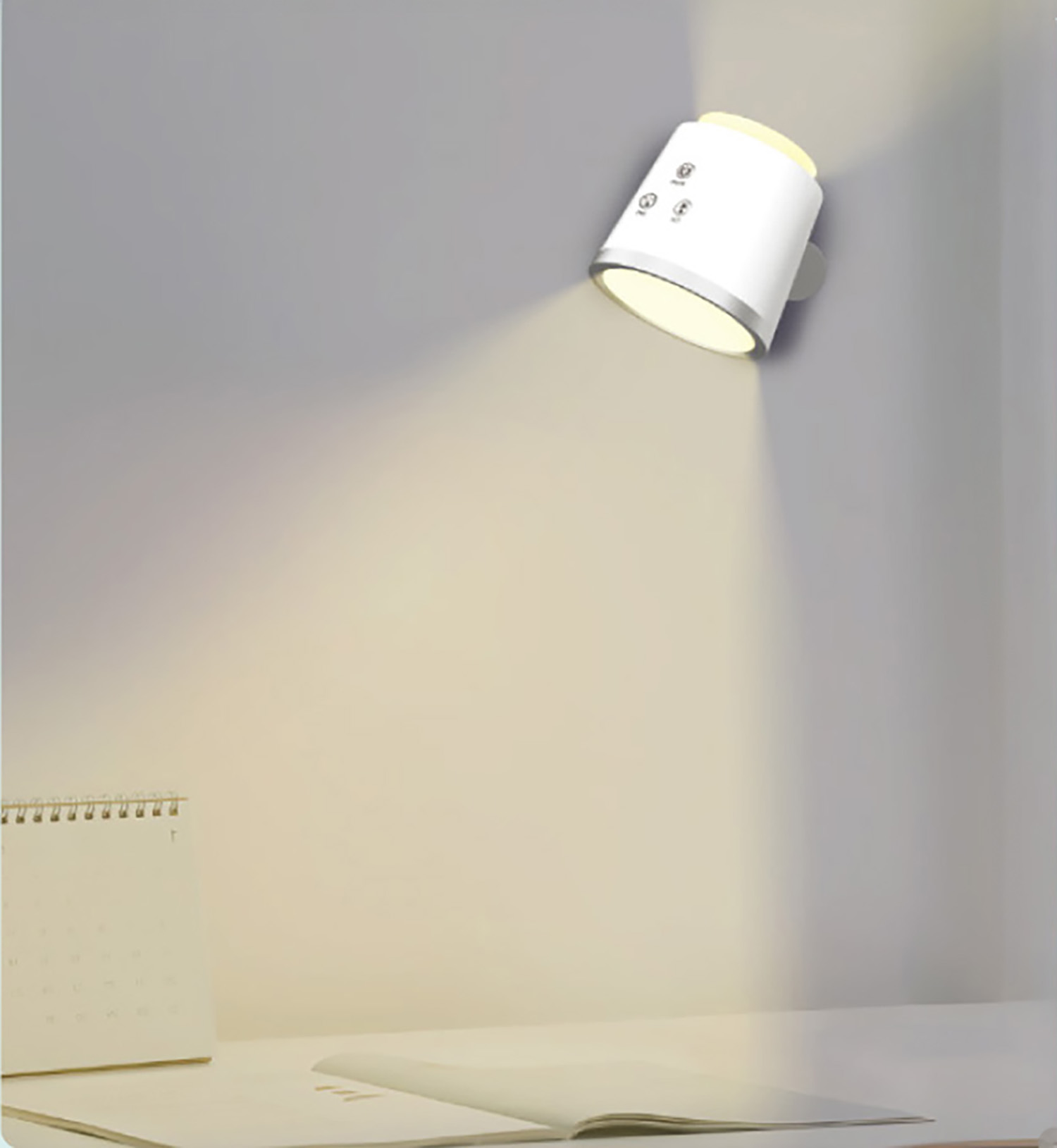 ➡️ Największym atutem lampki jest jej funkcja 4 w 1. Stojąc na regulowanym ramieniu jest lampką biurkową, zmieniając zaś uchwyt staje się kinkietem, który można powiesić na ścianie, suficie, czy dowolnym meblu. Działa ona również bez ciągłej konieczności podłączenia do prądu, więc w razie konieczności stanie się poręczną lampką przenośną. Używając przycisku na samej górze urządzenia zmienia się jego strumień, zamieniając ją w lampkę nocną, która może stać na stoliku przy łóżku.