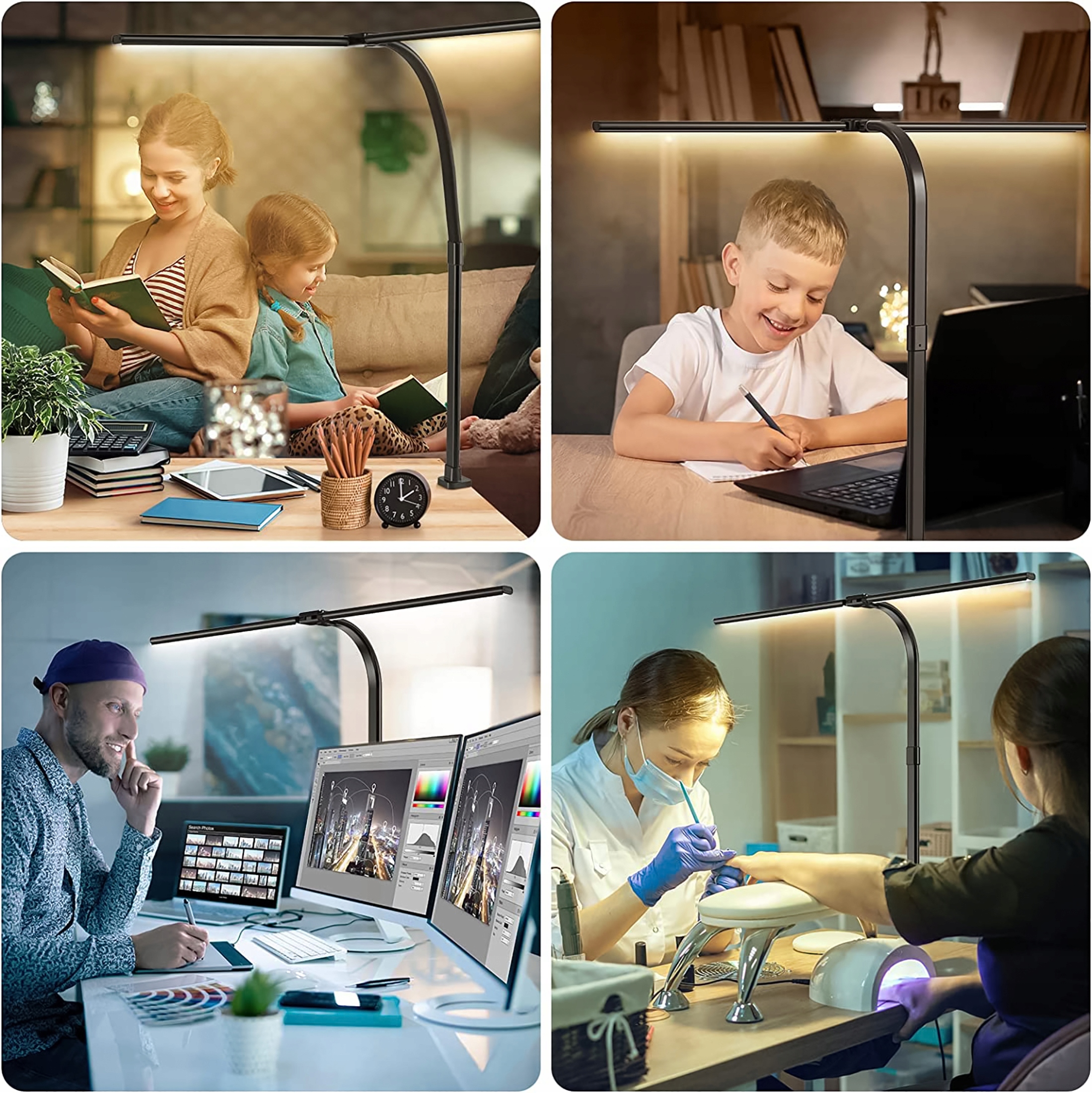 Długość ramion po obu stronach lampy można regulować w zakresie 90 stopni, co umożliwia swobodne dostosowanie kierunku światła do Twoich potrzeb. Lampka posiada zacisk, który ułatwia dokręcenie lampki na przykład do biurka.