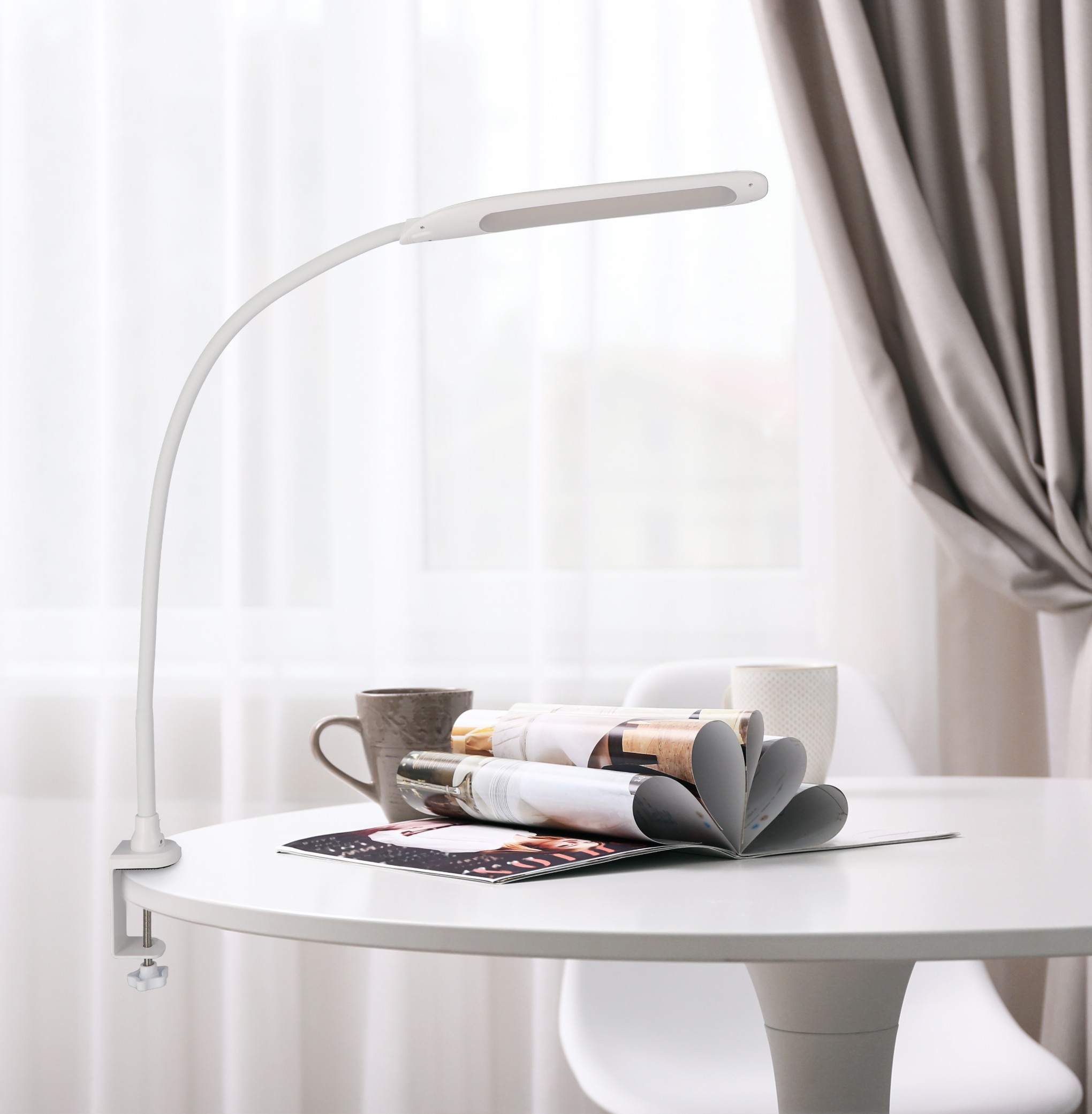 - Nowoczesna biała lampka biurkowa zapewni doskonałe oświetlenie Twojego miejsca pracy. Posiada także dodatkowe funkcje, które ułatwią organizację przestrzeni.