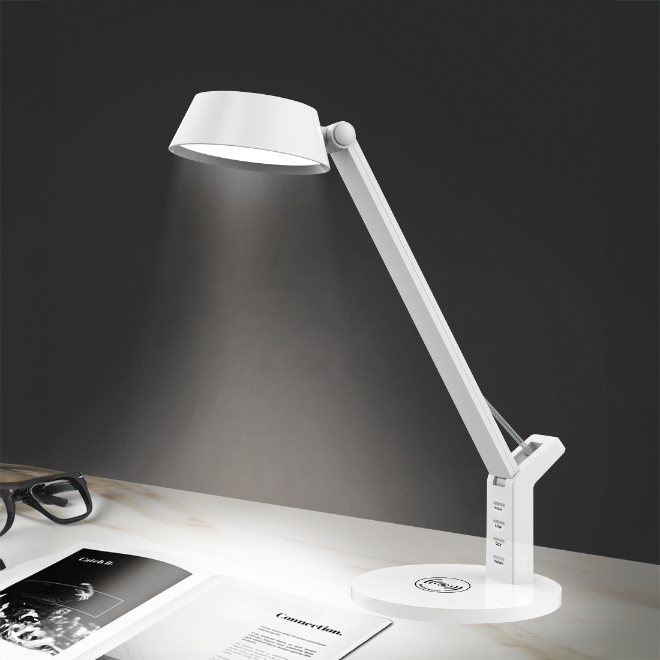 ➡️ Nowoczesna, biała lampka biurkowa z regulowanym poziomem jasności stanie się niezbędnikiem każdego miejsca pracy.