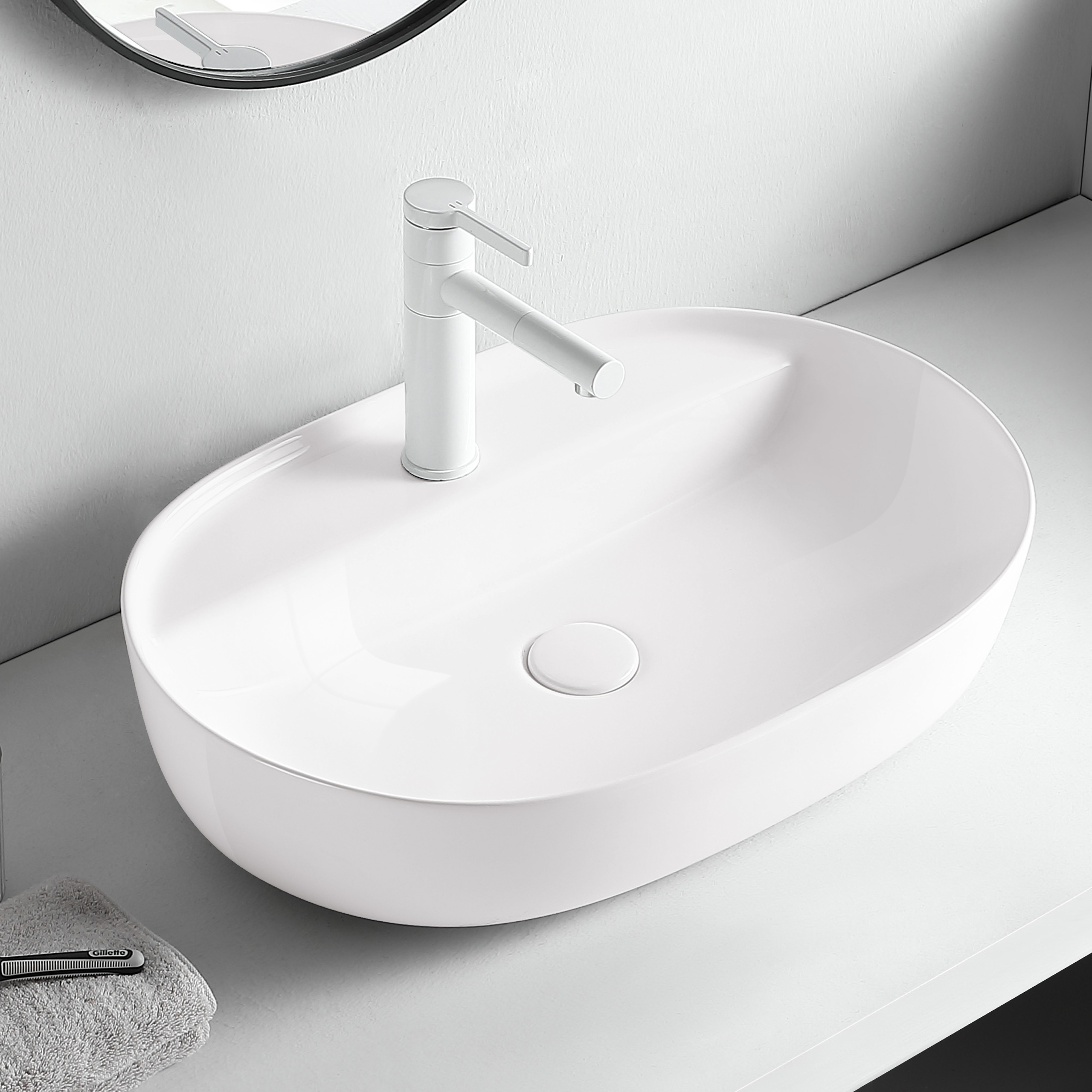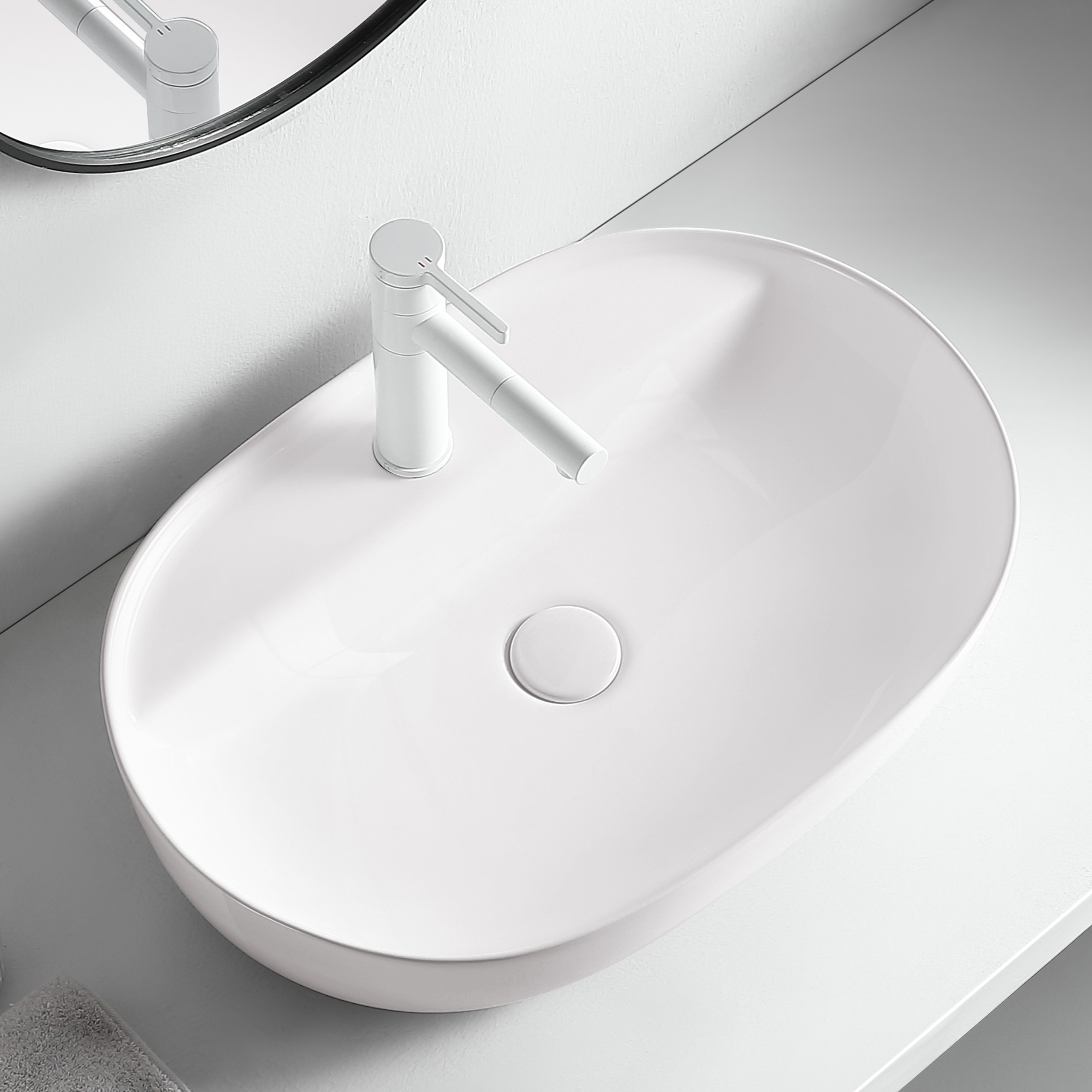 Umywalka została wyprodukowana z użyciem najwyższej jakości ceramiki sanitarnej, co zapewnia nie tylko trwałość, ale także estetyczny wygląd na lata. Jej owalny kształt oraz elegancki, biały kolor nadają łazience nowoczesny charakter, który doskonale komponuje się zarówno z minimalistycznymi, jak i bardziej klasycznymi aranżacjami wnętrz.