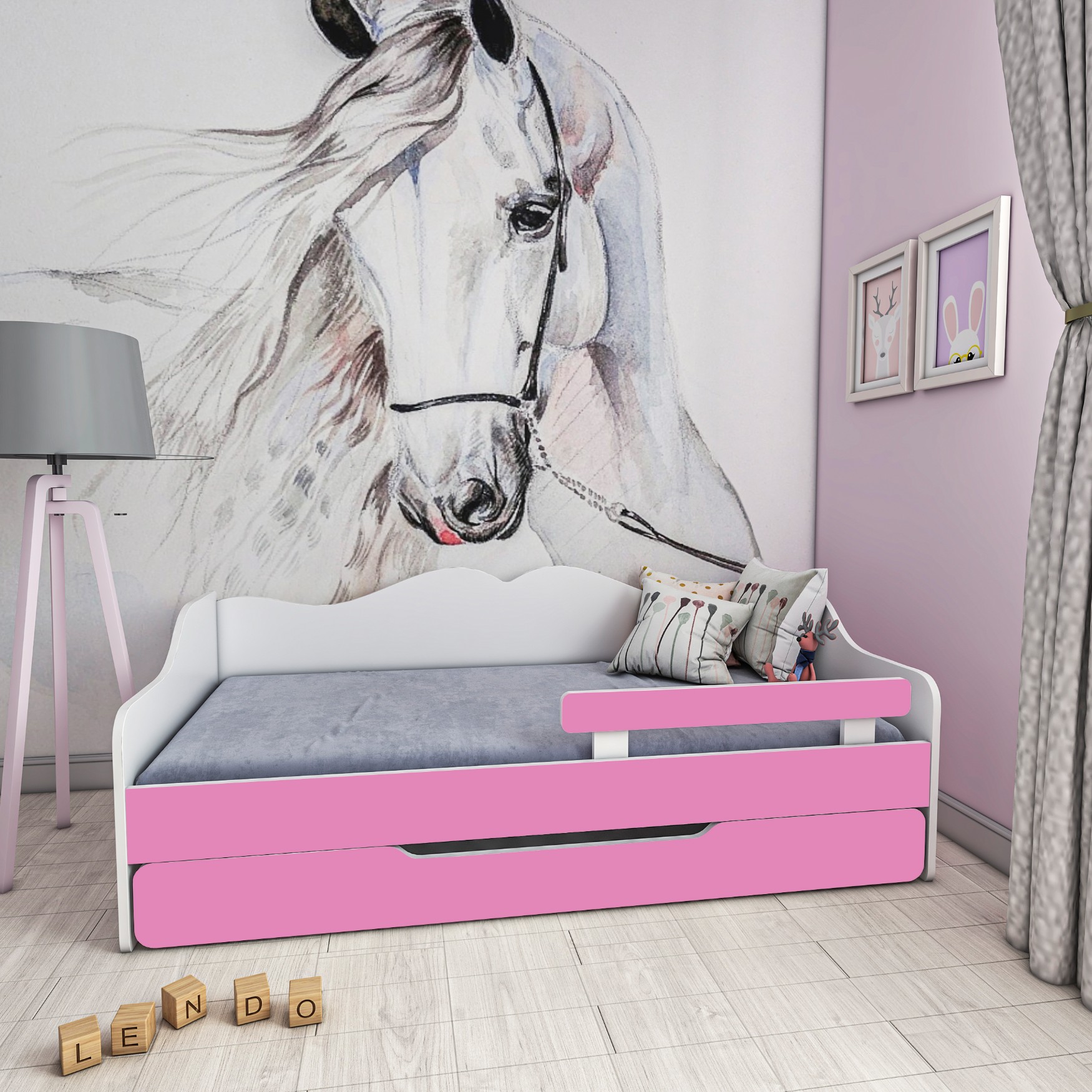 Łóżko dziecięce BELLA 160x70 biało-różowe