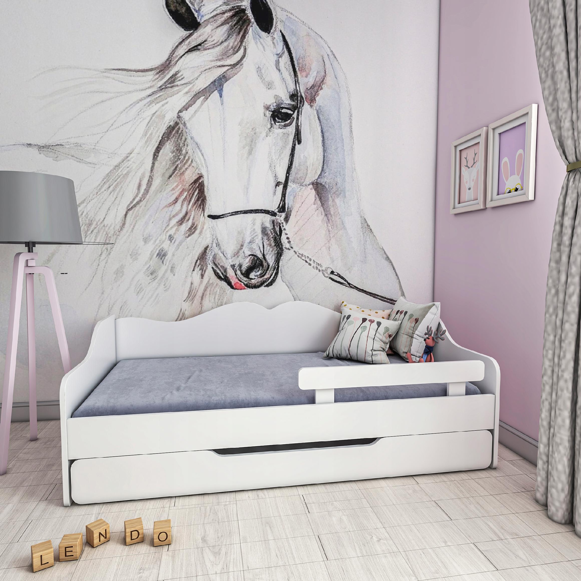 Łóżko zawiera szufladę z materacem, która pełni funkcję drugiego łóżka. Taki zestaw świetnie sprawdzi się dla rodzeństwa lub dla przyjaciół zaproszonych na noc.
