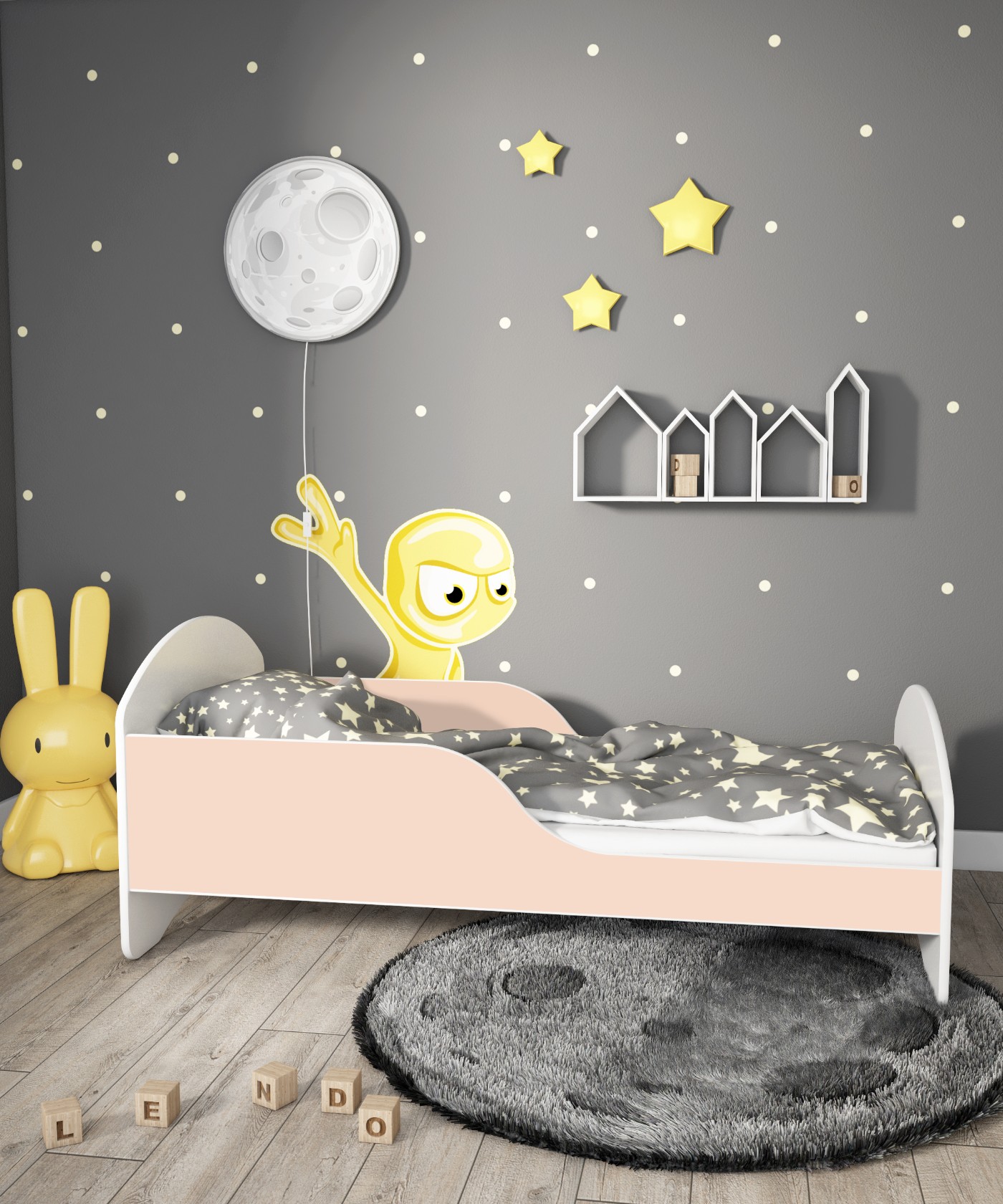 Łóżko posiada odpowiednio wyprofilowane boki, wyższe przy zagłówku, które zabezpieczają dziecko przed wypadnięciem.