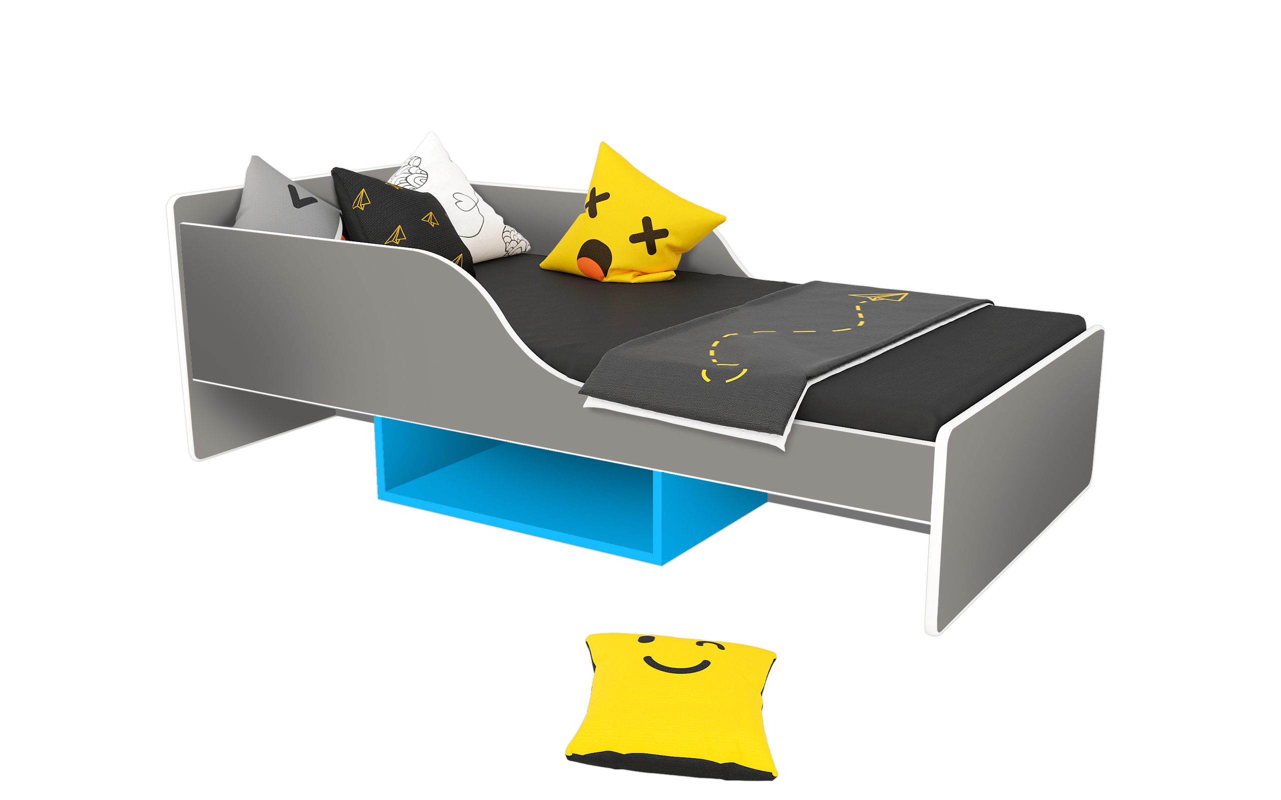 - Półkę pod łóżkiem w kolorze niebieskim.