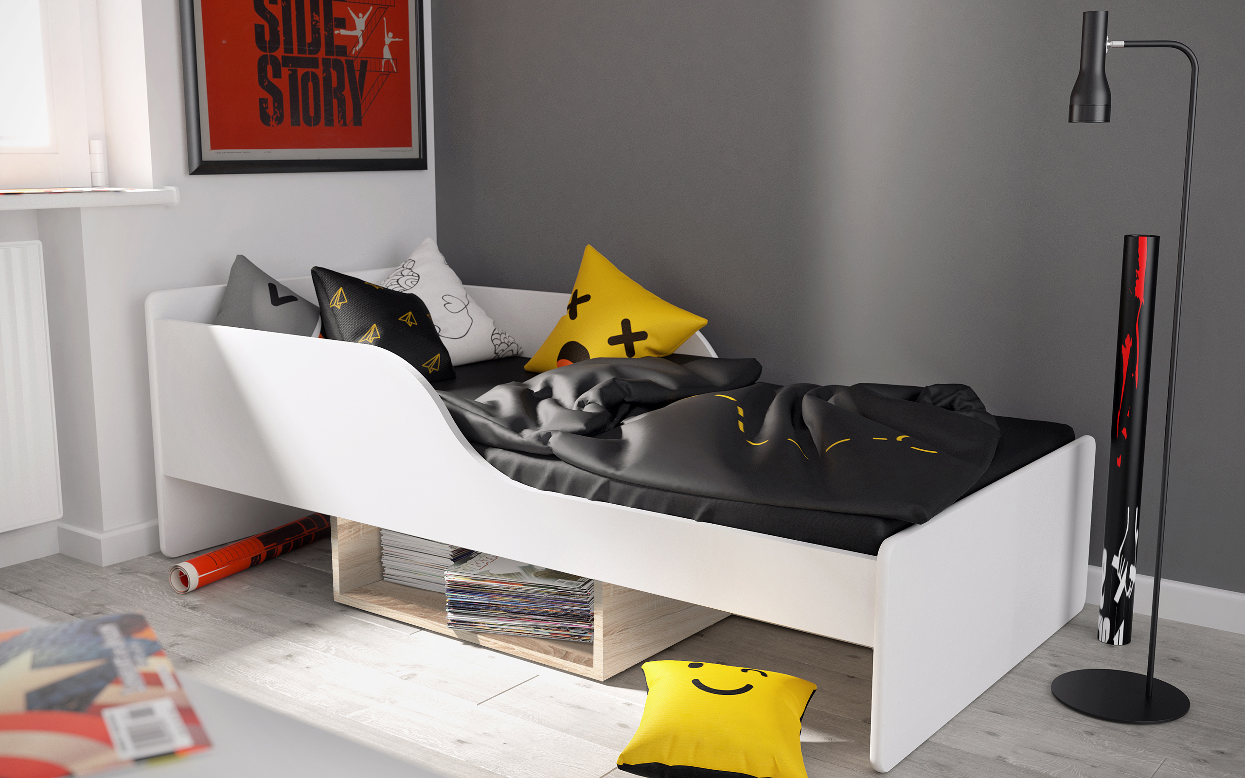 Elementem wyróżniającym nasz mebel jest półka pod łóżkiem, która stanowi dodatkowe miejsce na książki, gazety czy inne niezbędne przedmioty.