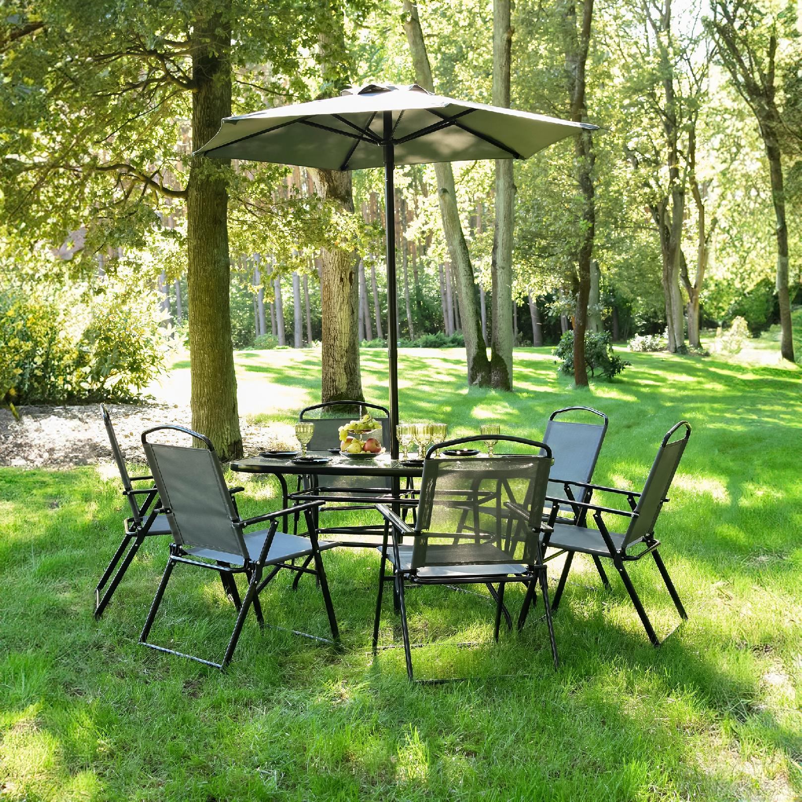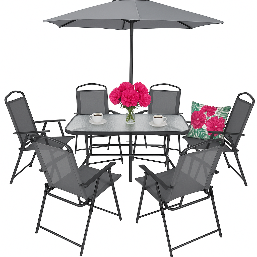 Komplet MEBLI stół + 6 krzeseł + parasol