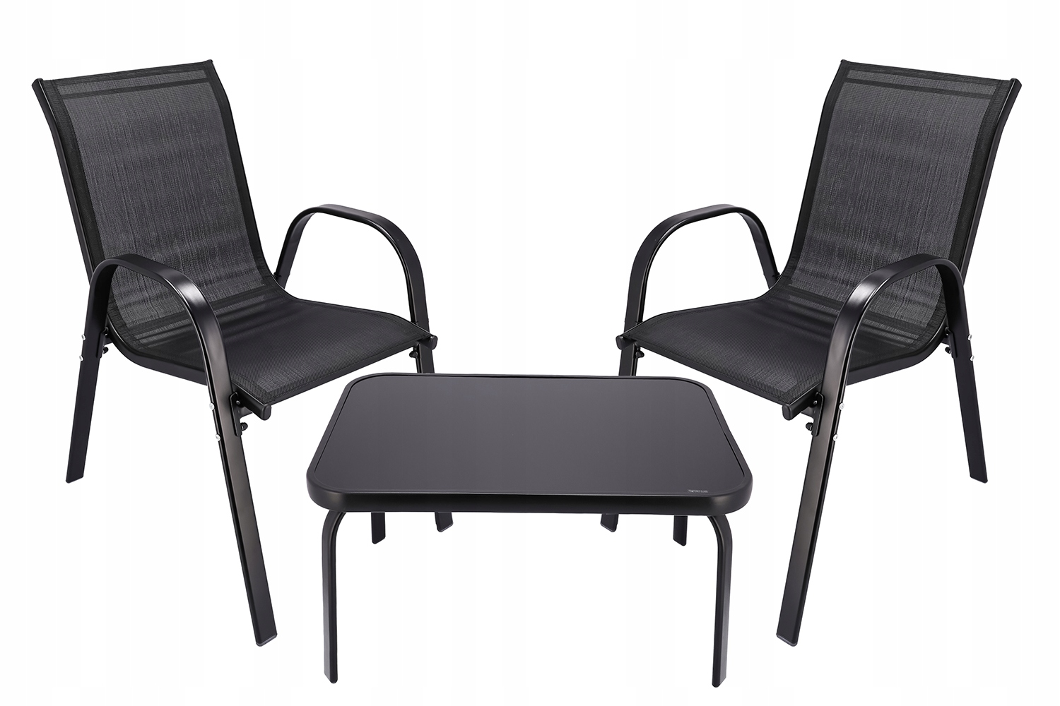 - Komplet mebli FIESTA składa się ze stolika i dwóch wygodnych krzeseł.