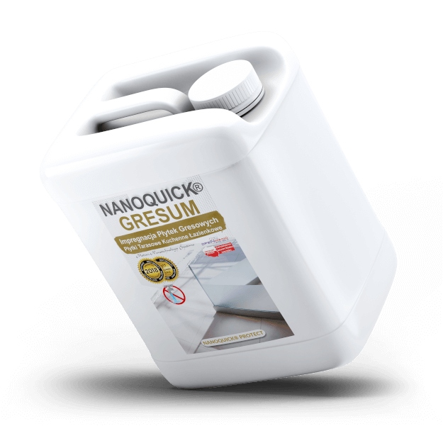 - Produkt NANOQUICK® Gresum efektywnie zabezpiecza materiał przed wnikaniem w strukturę wody brudu oraz substancji smolistych różnego rodzaju.